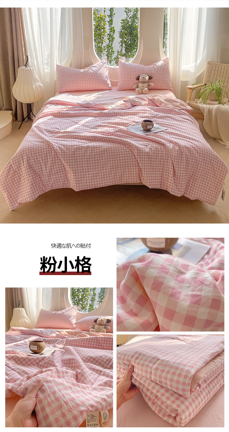 商品名称:老帅的工厂店 2025新款云朵棉无印风格子夏被 粉小格