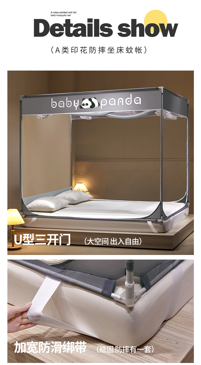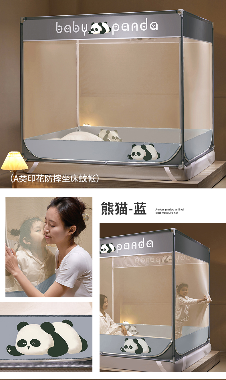 当前位置: 91家纺网 > 商品网购 > 床上用品 > 蚊帐 > 坐床式蚊帐 > 伊而梦蚊帐 2024新款熊猫印花U形三开门坐床蚊帐 熊猫-蓝