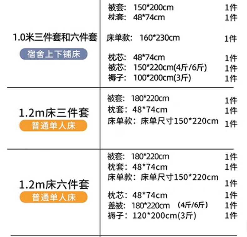 1.0米床单款-六件套(6斤被芯) | ¥207.00 |