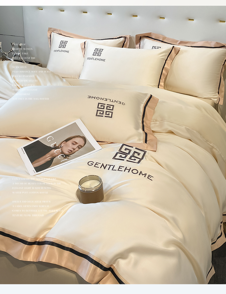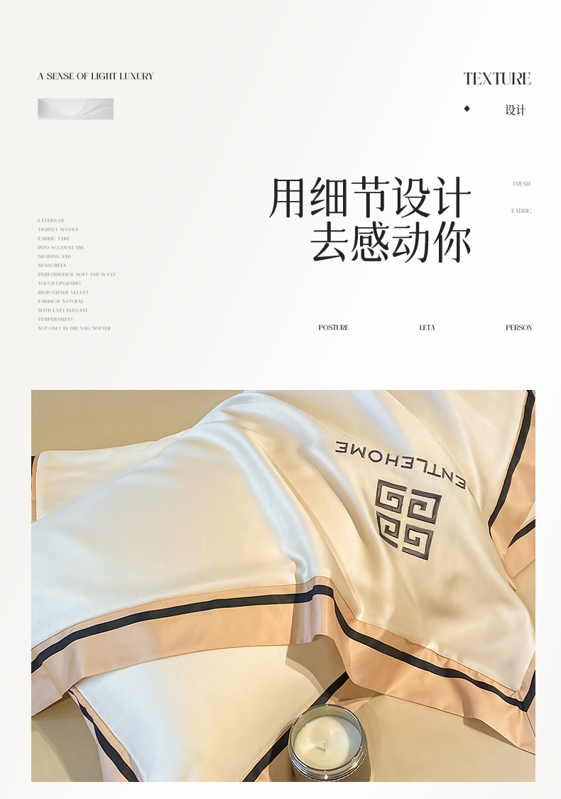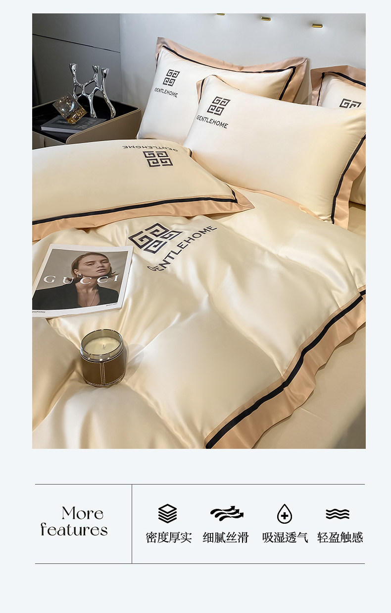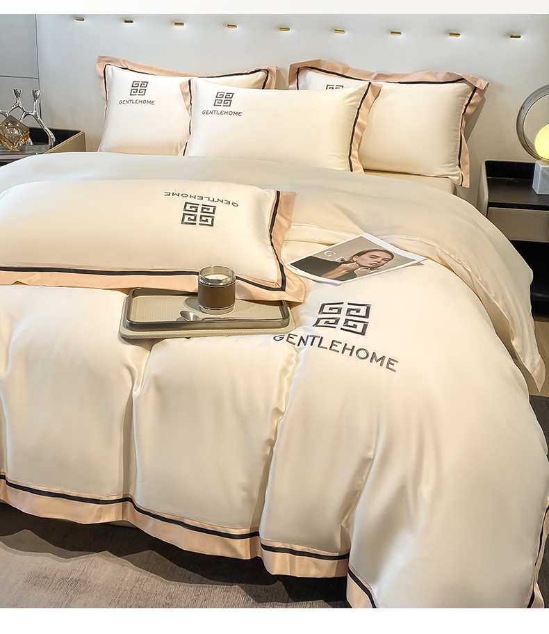 商品名称:眷恋家纺 2024新品水洗真丝宽边四件套-挪威系列 挪威-奶昔白+奶茶