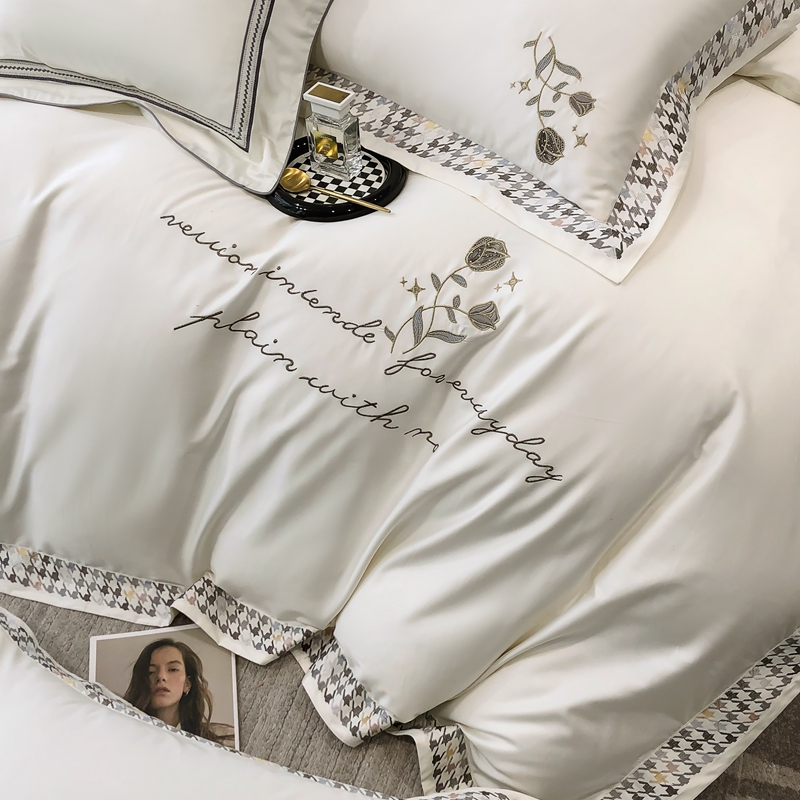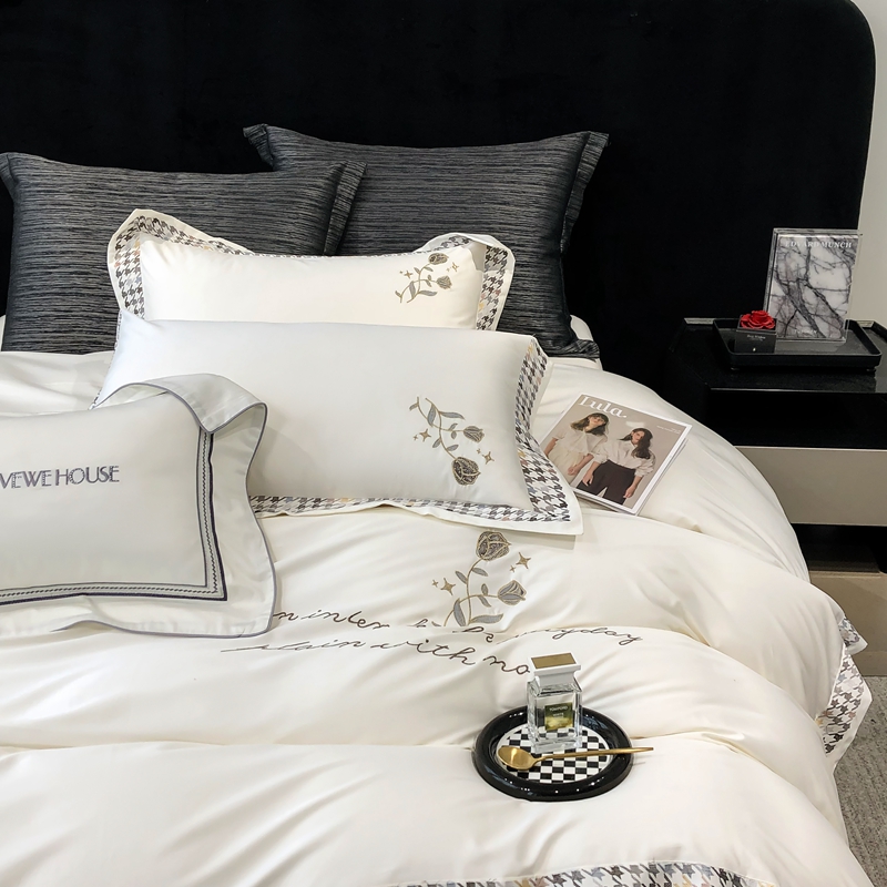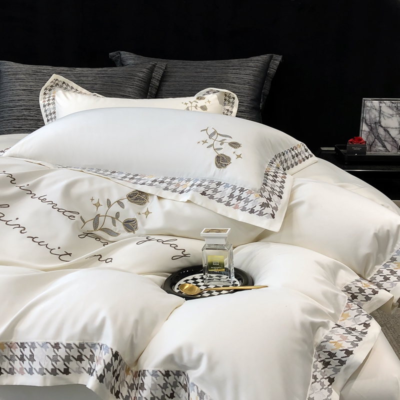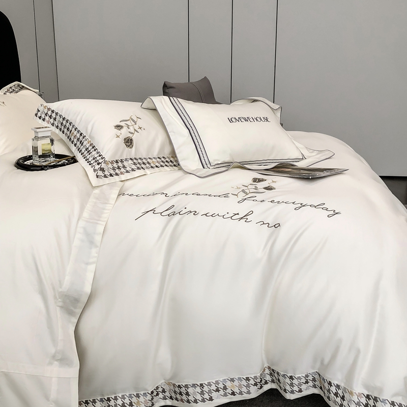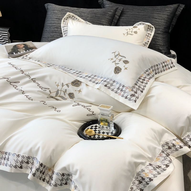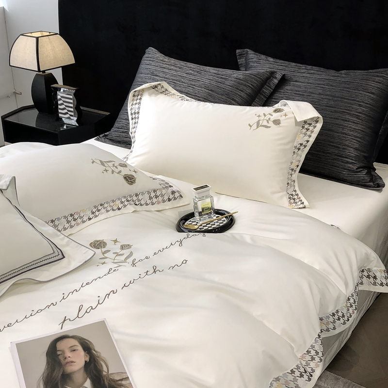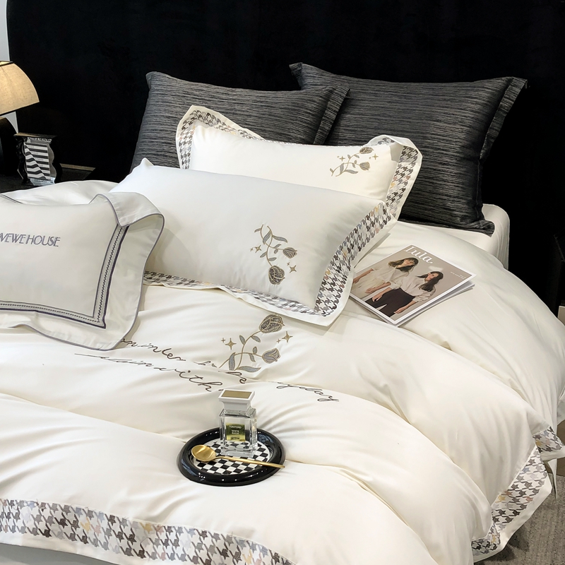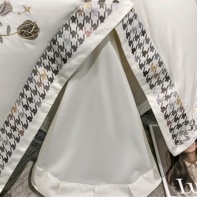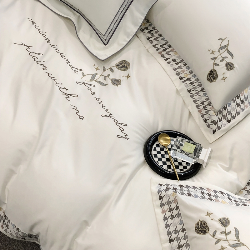 若未家居 2025新款长绒棉高精密刺绣款百万针工艺套件 千鸟格刺绣-锦簇 贵族白