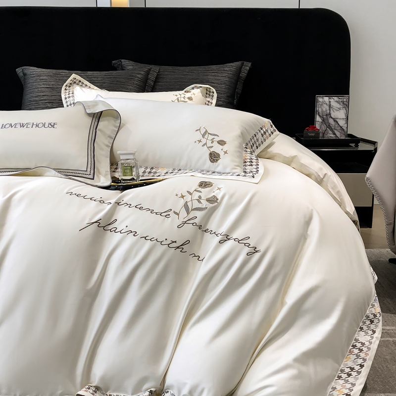 (总)若未家居2023新款轻奢意式50支全棉长绒棉四件套-水墨,贵族白,雾棕,烟蓝