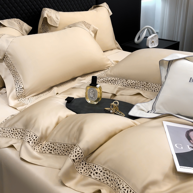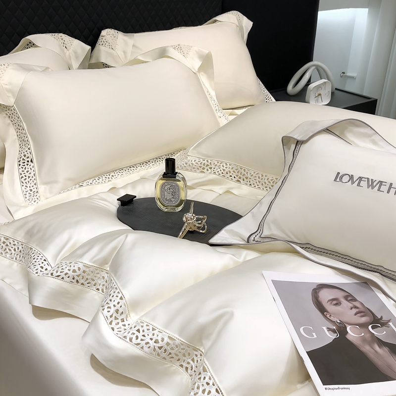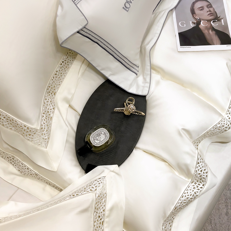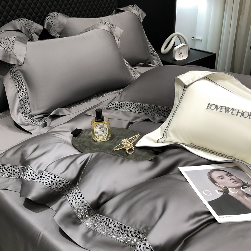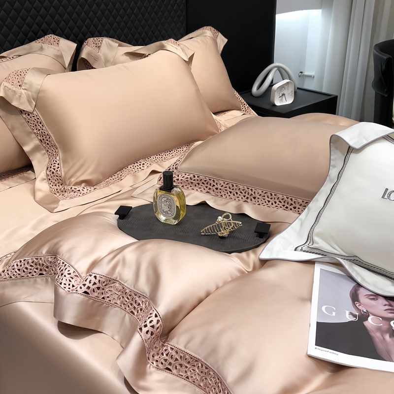 (总)若未 2023新款50支长绒棉镂空轻奢四件套-奢梵克,爱玛橘,宾利蓝,粉豆沙,贵族白,贵族红,气质灰,山灰色,天蓝