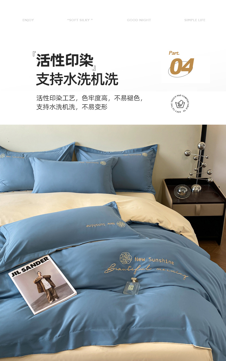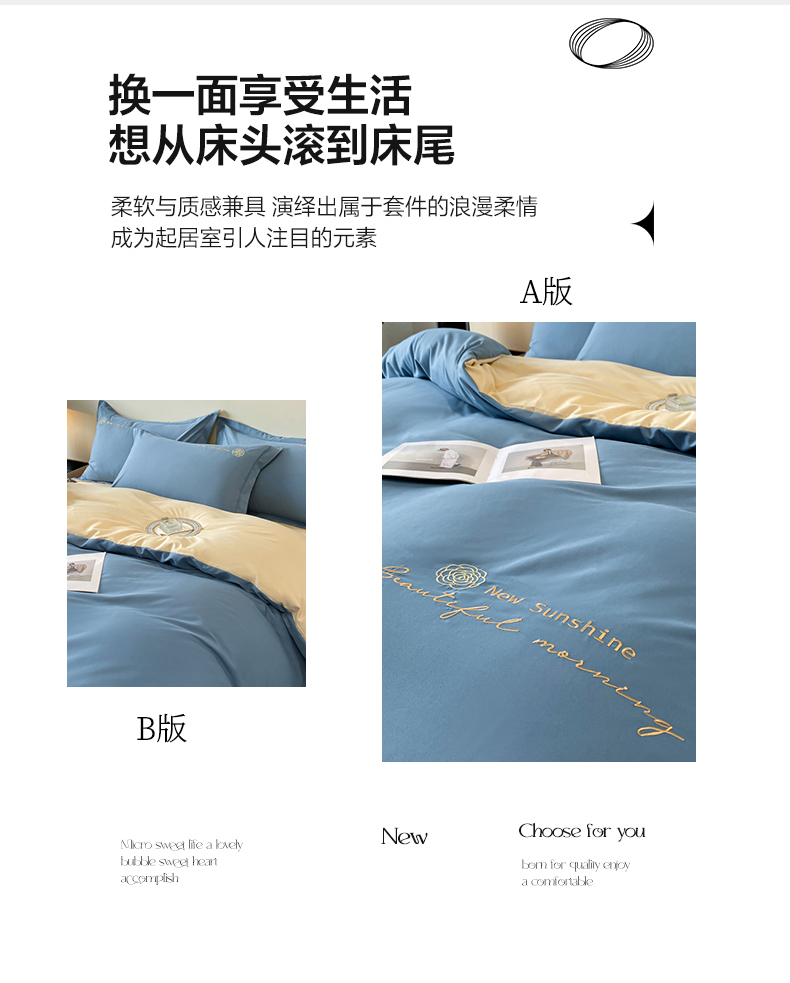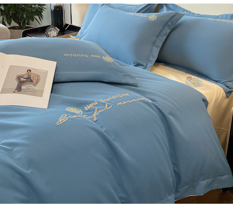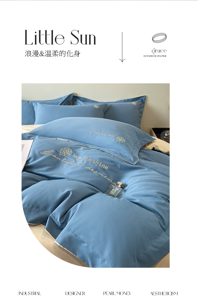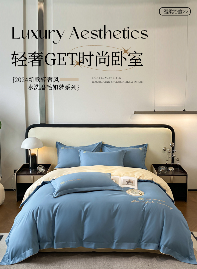 N先生 2024新款轻奢风水洗磨毛刺绣四件套-如梦系列 如梦-蓝
