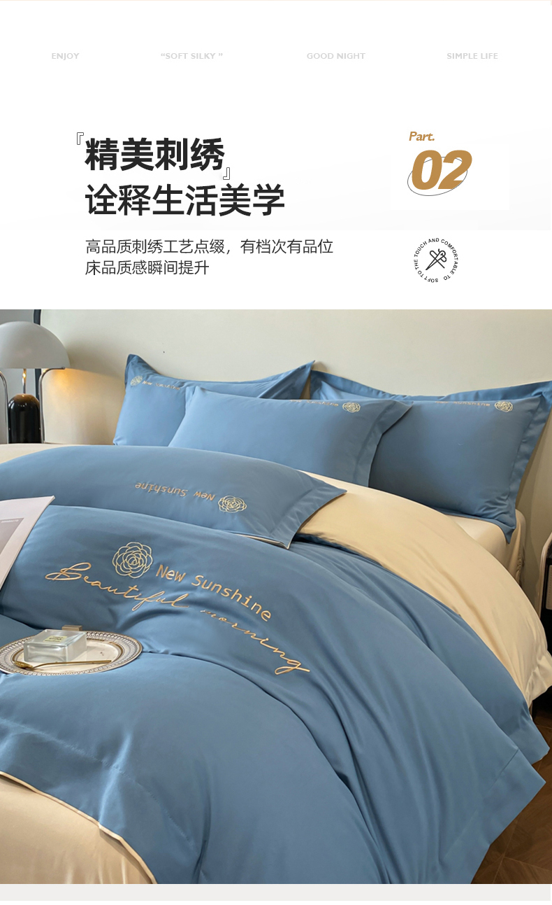商品名称:N先生 2024新款轻奢风水洗磨毛刺绣四件套-如梦系列 如梦-蓝