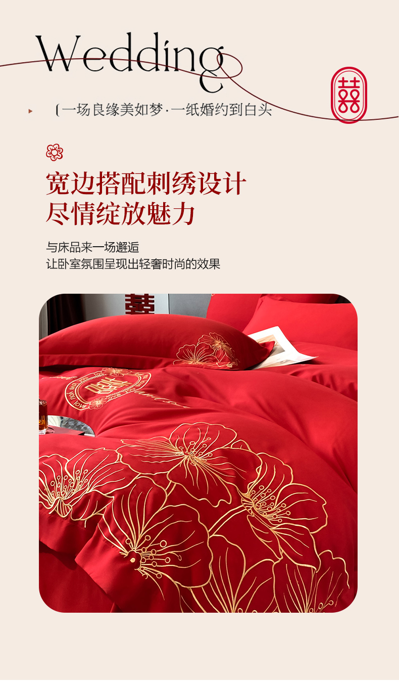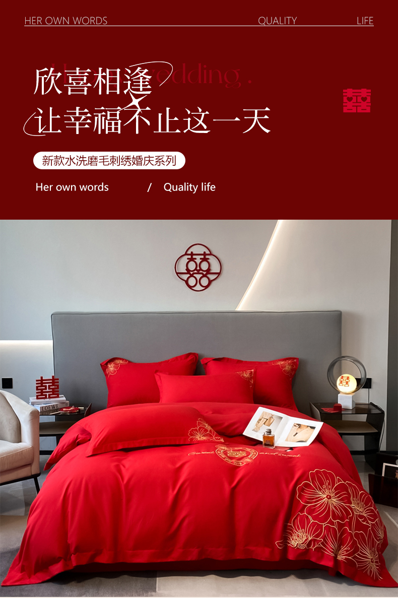 商品名称:N先生 2025新款婚庆水洗磨毛刺绣四件套 倾城爱恋