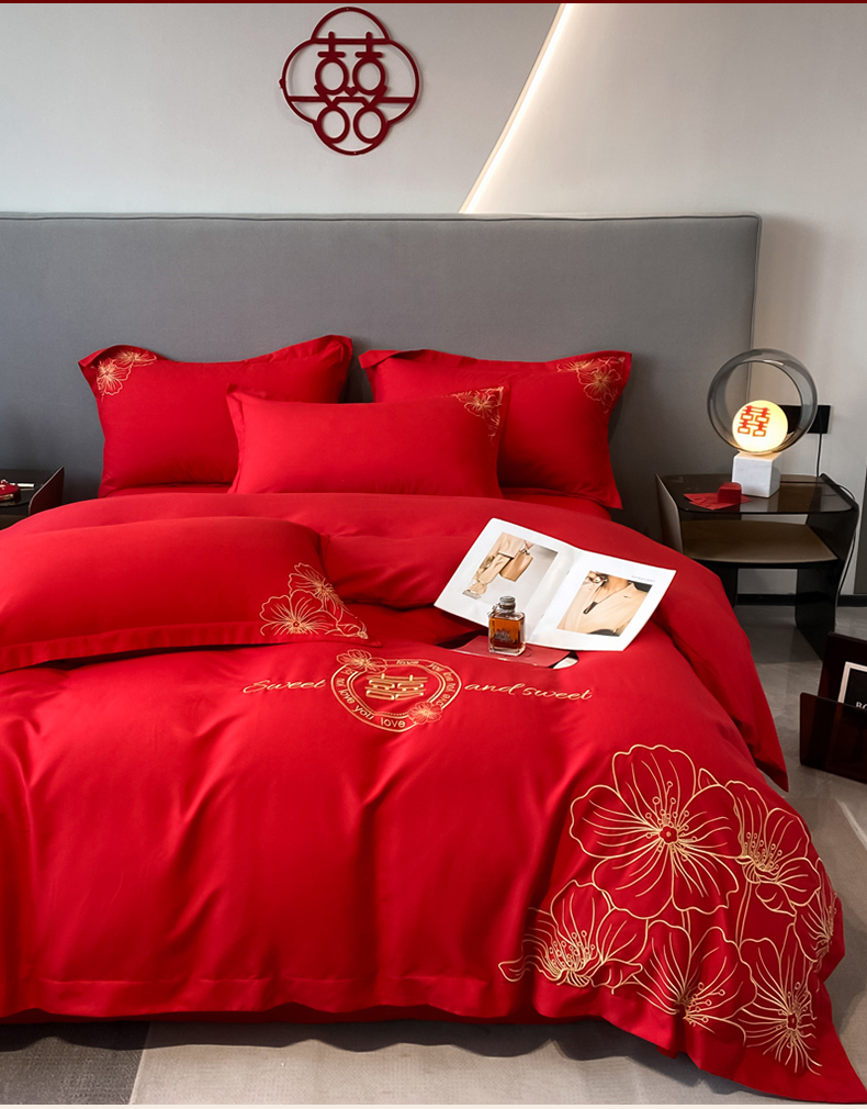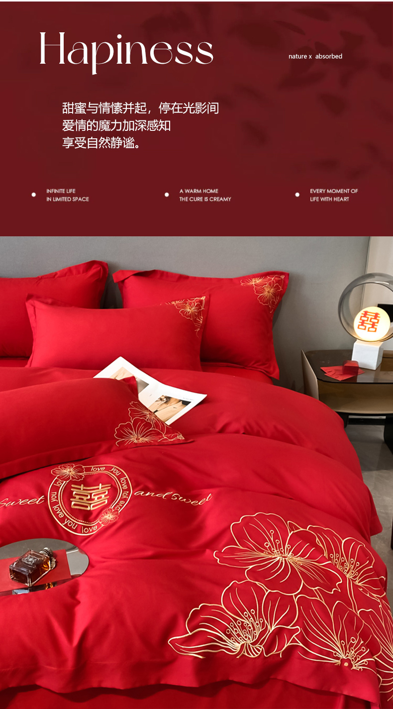 N先生 2025新款婚庆水洗磨毛刺绣四件套 倾城爱恋