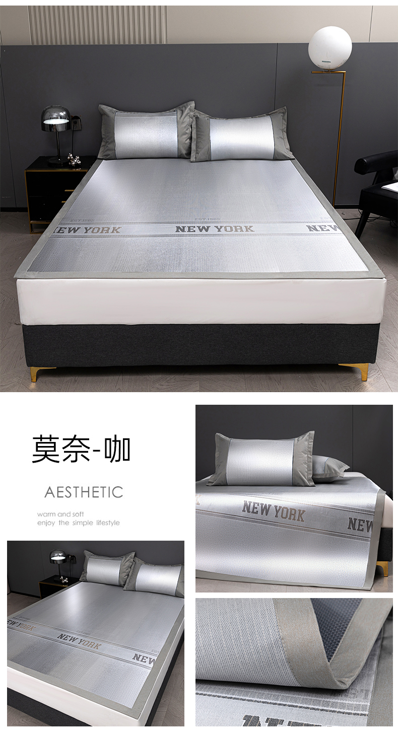 (总)席之家 2025新款高精密三纬可水洗冰提花丝凉席,莫奈-咖,莫奈-灰,莫奈-绿