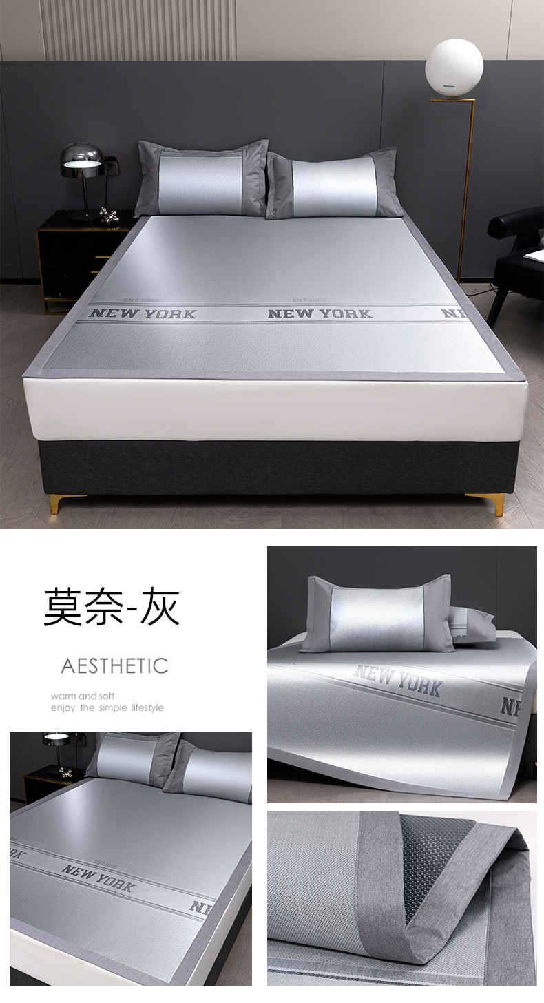 (总)席之家 2025新款600D提花冰丝席,灰色,绿色