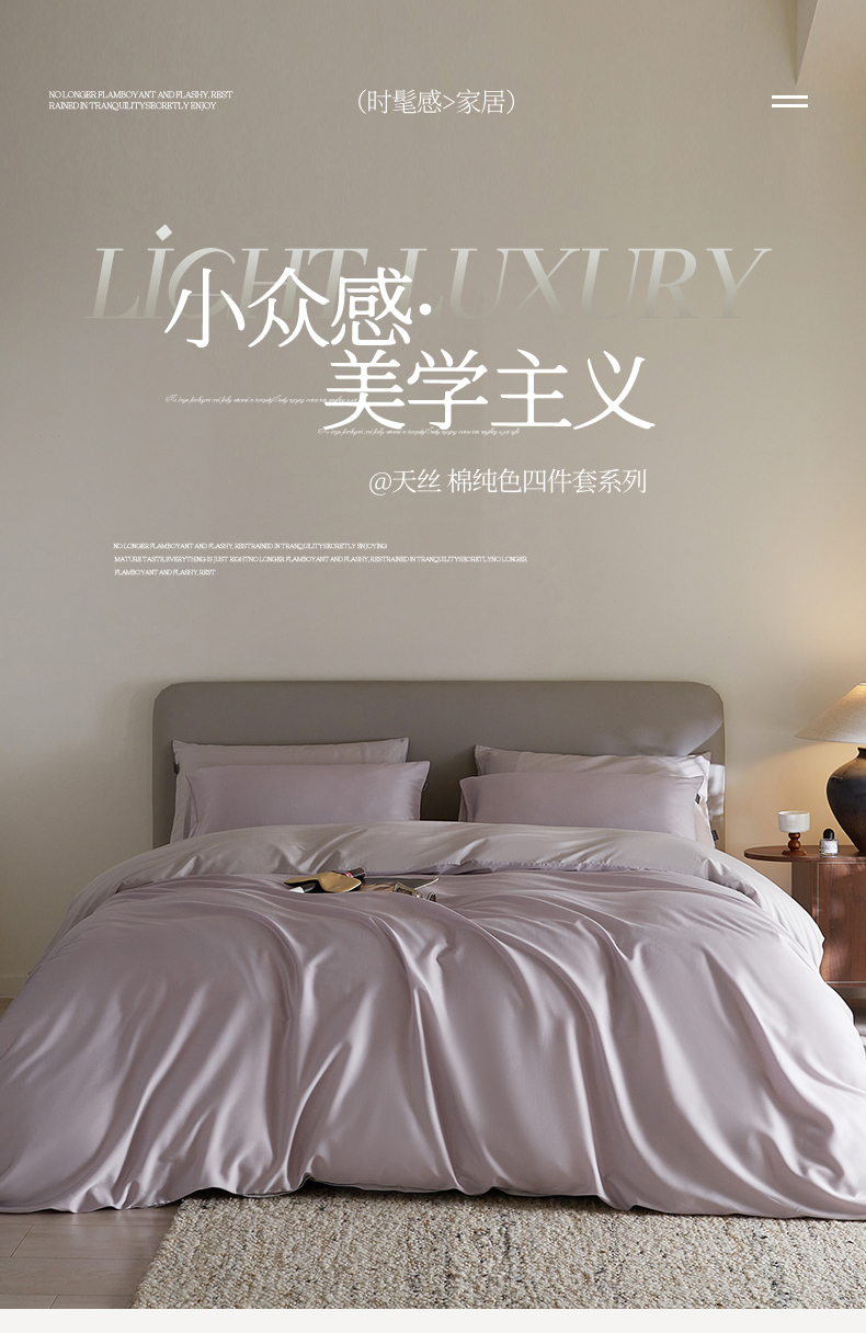 当前位置: 91家纺网 > 商品网购 > 床品套件 > 四件套 > 莱赛尔四件套 > 初拾 2024新款天丝棉纯色四件套-莫兰迪 莫兰迪-紫爱灰