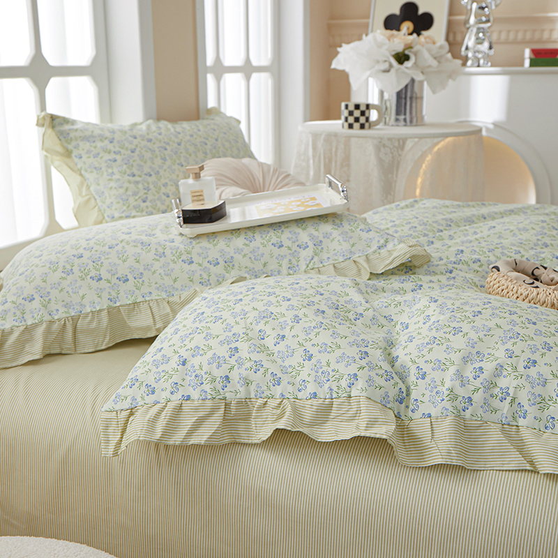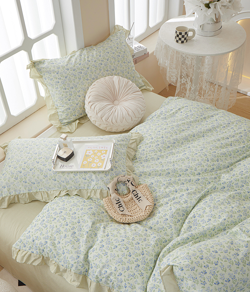 当前位置: 91家纺网 > 商品网购 > 床品套件 > 四件套 > 全棉普通四件套 > 一米阳光 2024新款2月全棉花边款四件套 花开浅夏