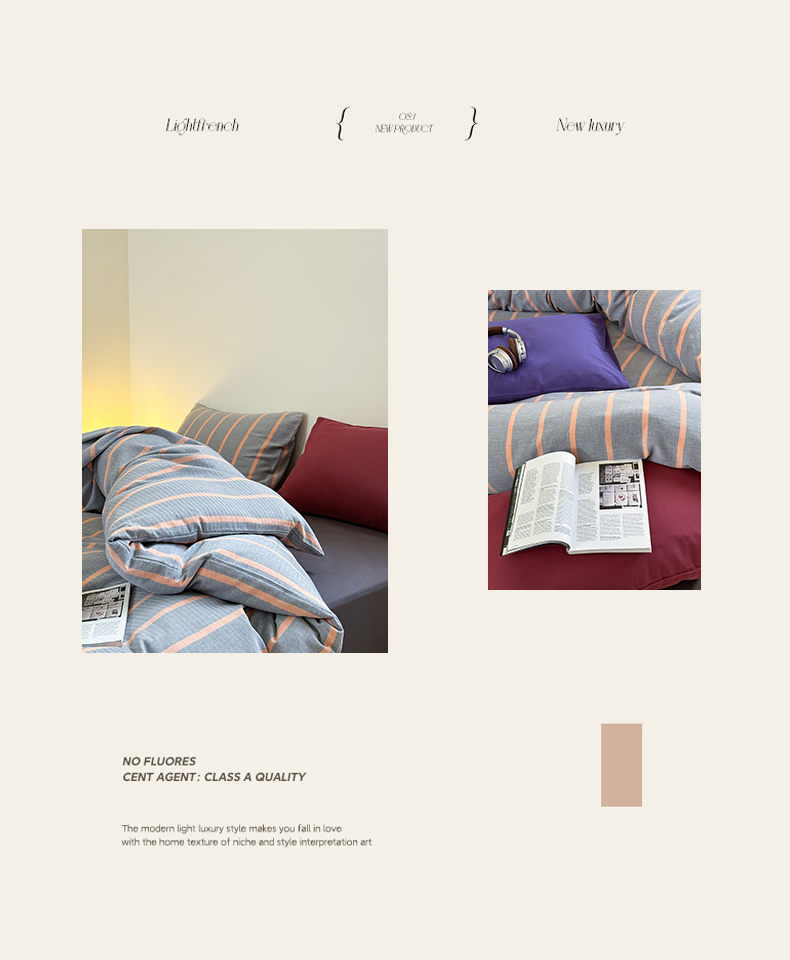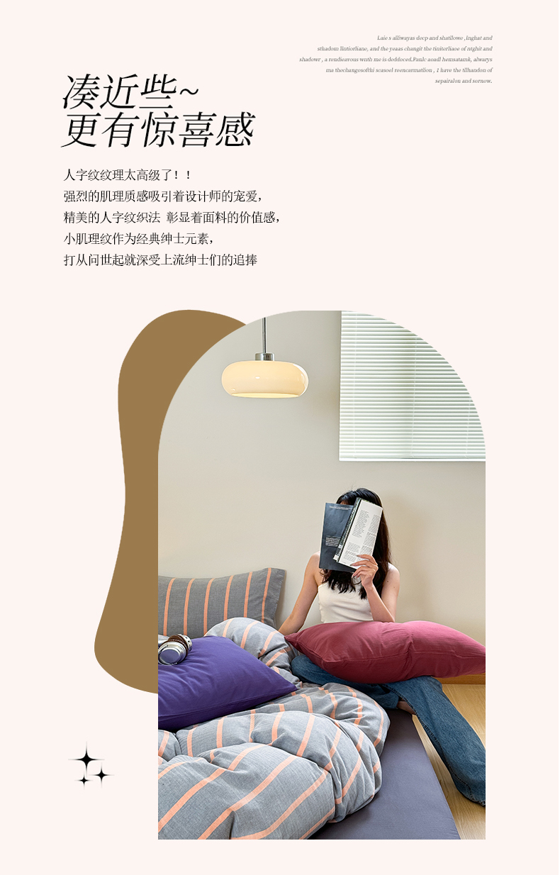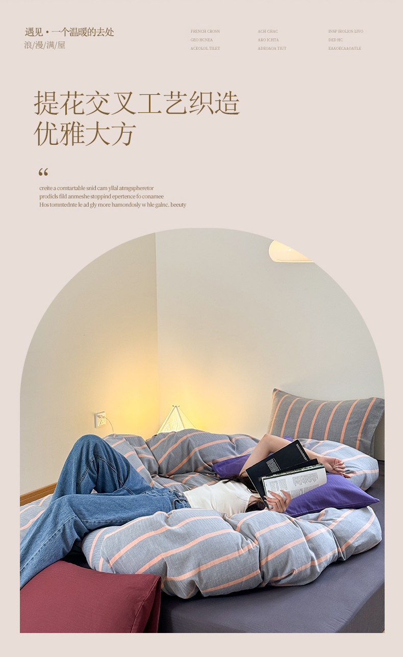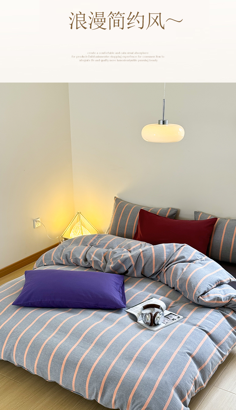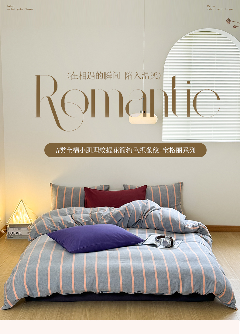 当前位置: 91家纺网 > 商品网购 > 床品套件 > 四件套 > 全棉普通四件套 > 玛奇朵 2024春夏新品A类全棉小肌理纹提花简约色织条纹四件套-宝格丽系列 宝格丽-橘灰