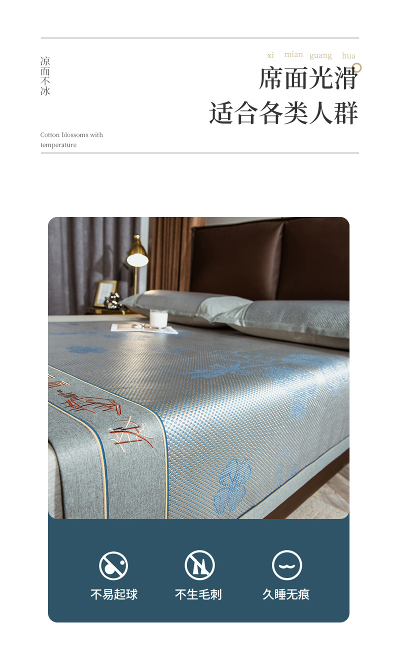 当前位置: 91家纺网 > 商品网购 > 床上用品 > 凉席 > 其他凉席 > 全季家居 2024新款加厚加密宽边刺绣提花冰藤凉席 夏花-烟灰(床席款)