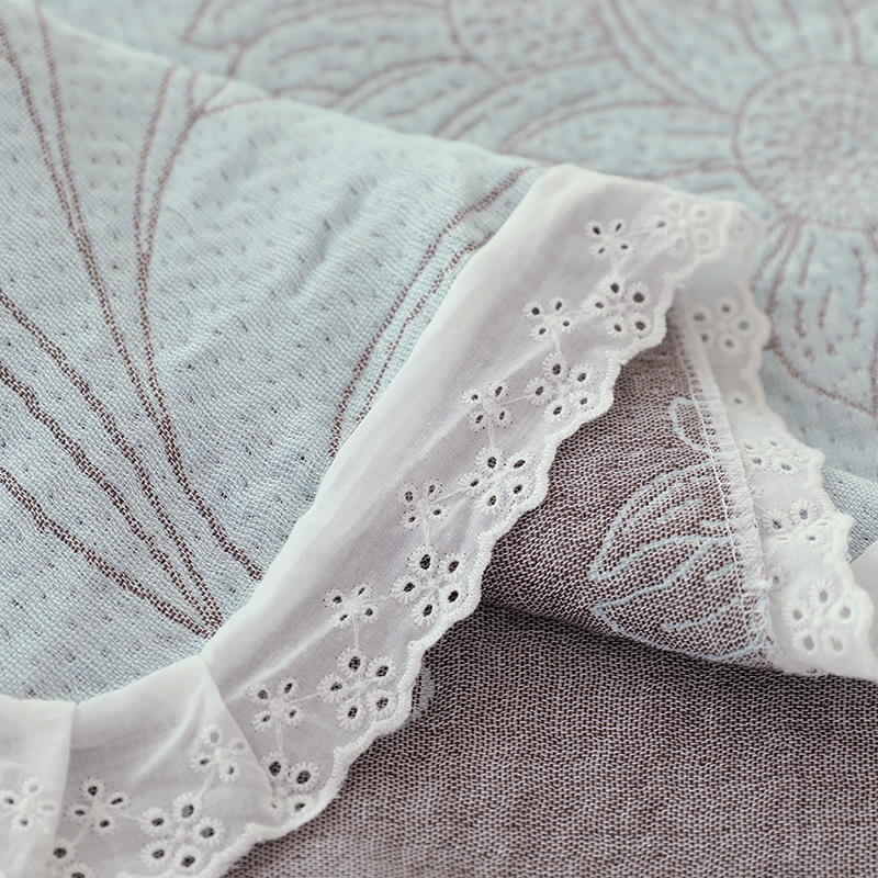 当前位置: 91家纺网 > 商品网购 > 床上用品 > 枕巾 > 朴尔毛巾被2024年新款韩式花边四层纱枕巾纯棉竹纤维加大成人纱布巾 怒放-蓝52*78cm