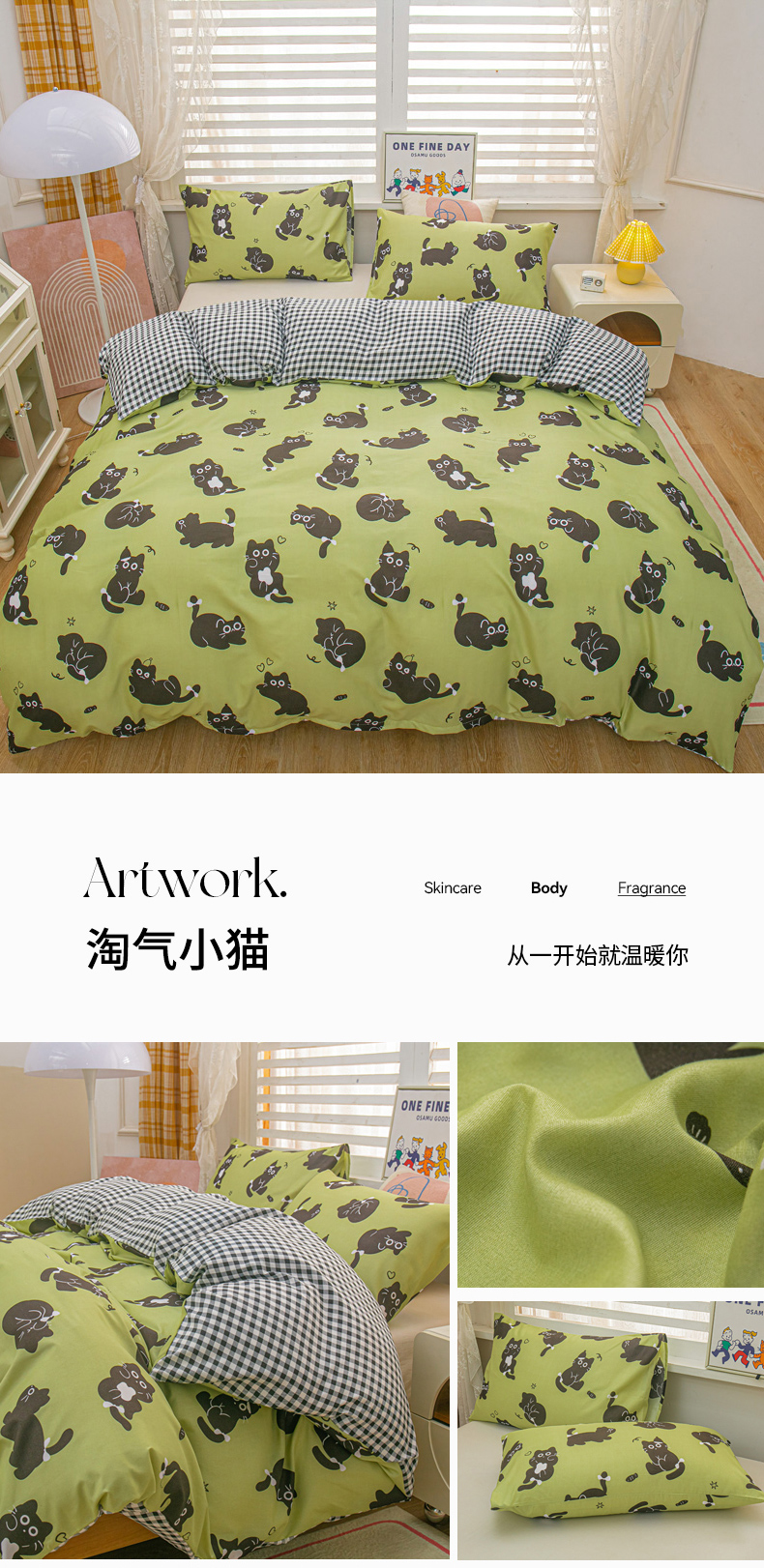 当前位置: 91家纺网 > 商品网购 > 床品套件 > 四件套 > 莎臣豹 2025新款植物羊绒印花四件套 淘气小猫