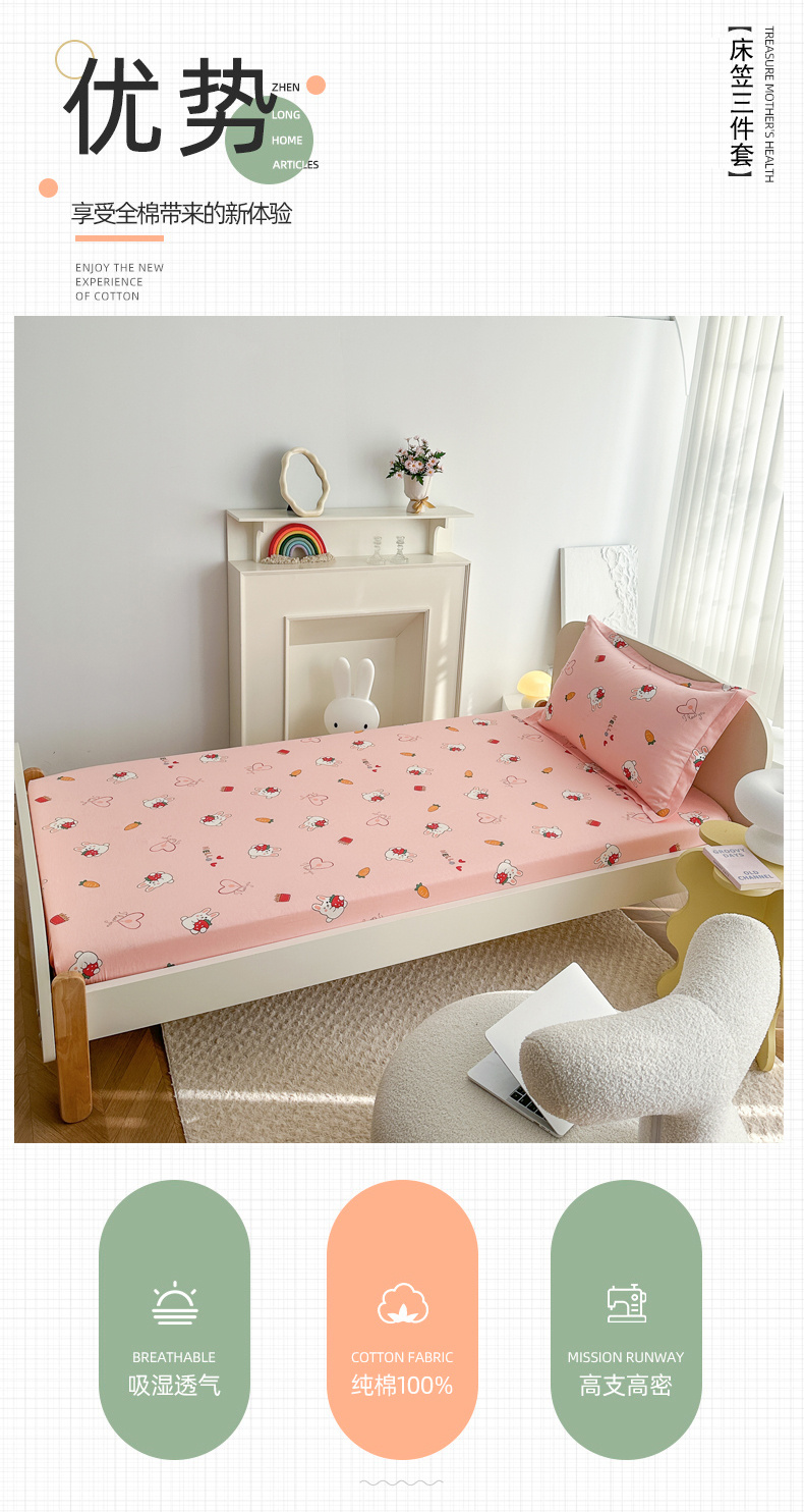 当前位置: 91家纺网 > 商品网购 > 床品套件 > 三件套 > 凌云家纺 2025新款A类全棉床笠款三件套 水果兔-粉