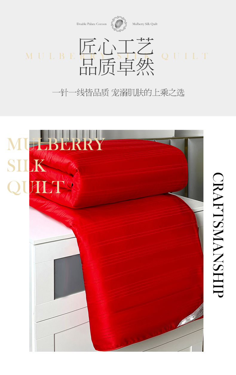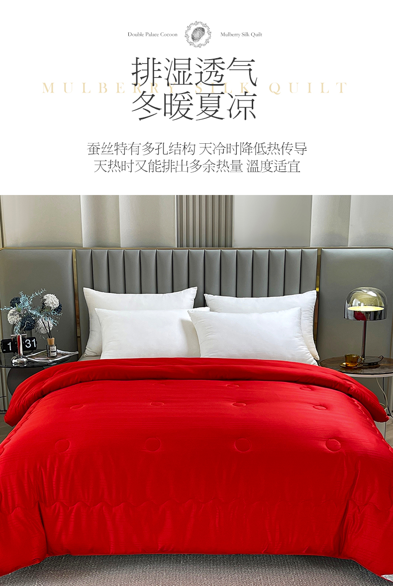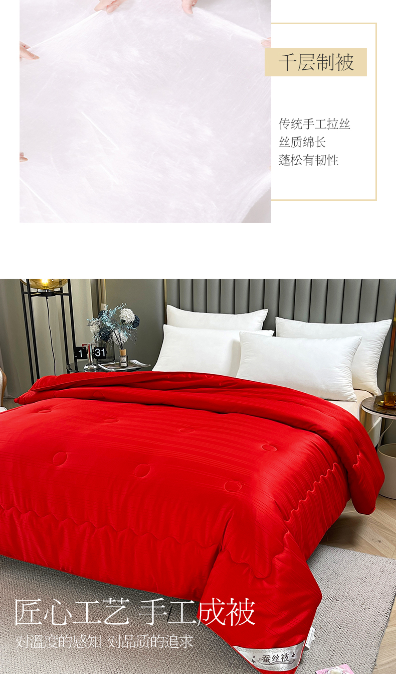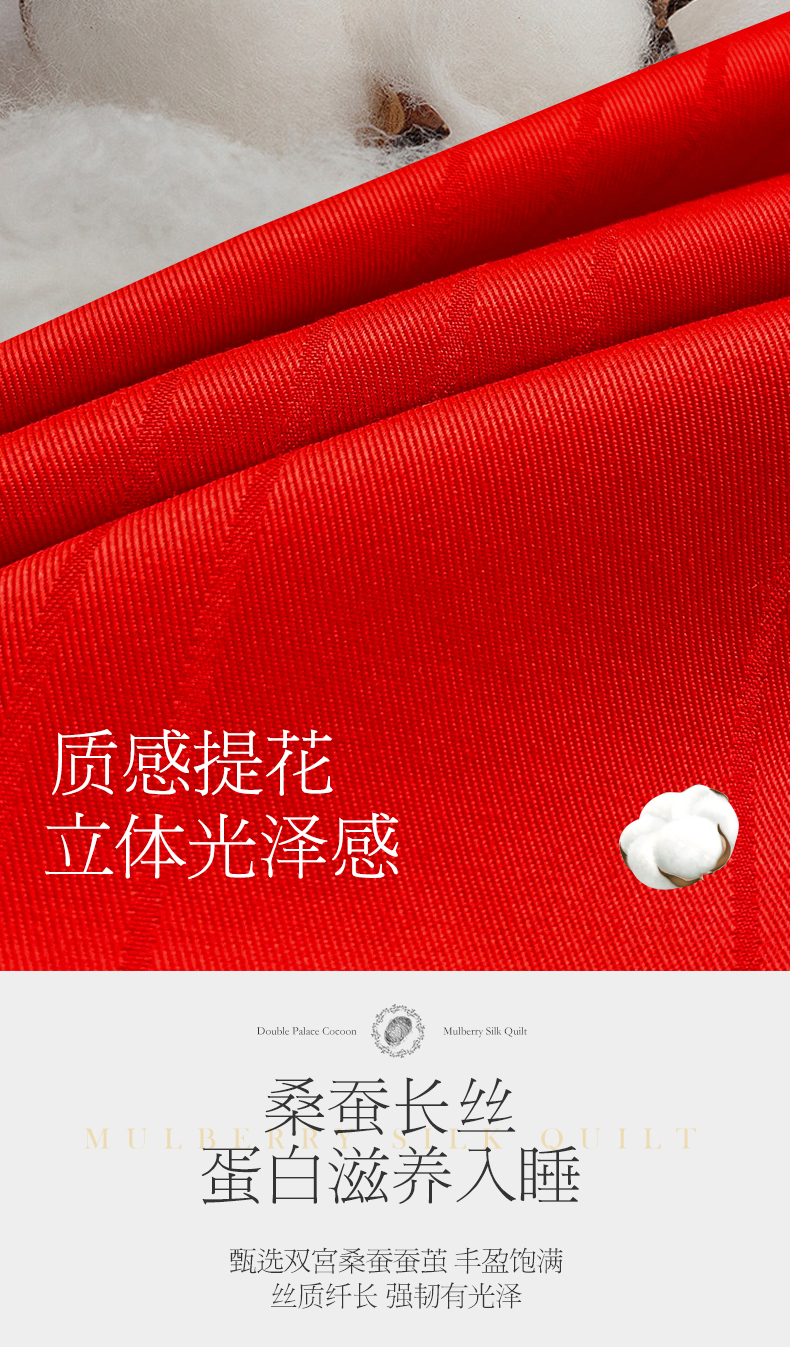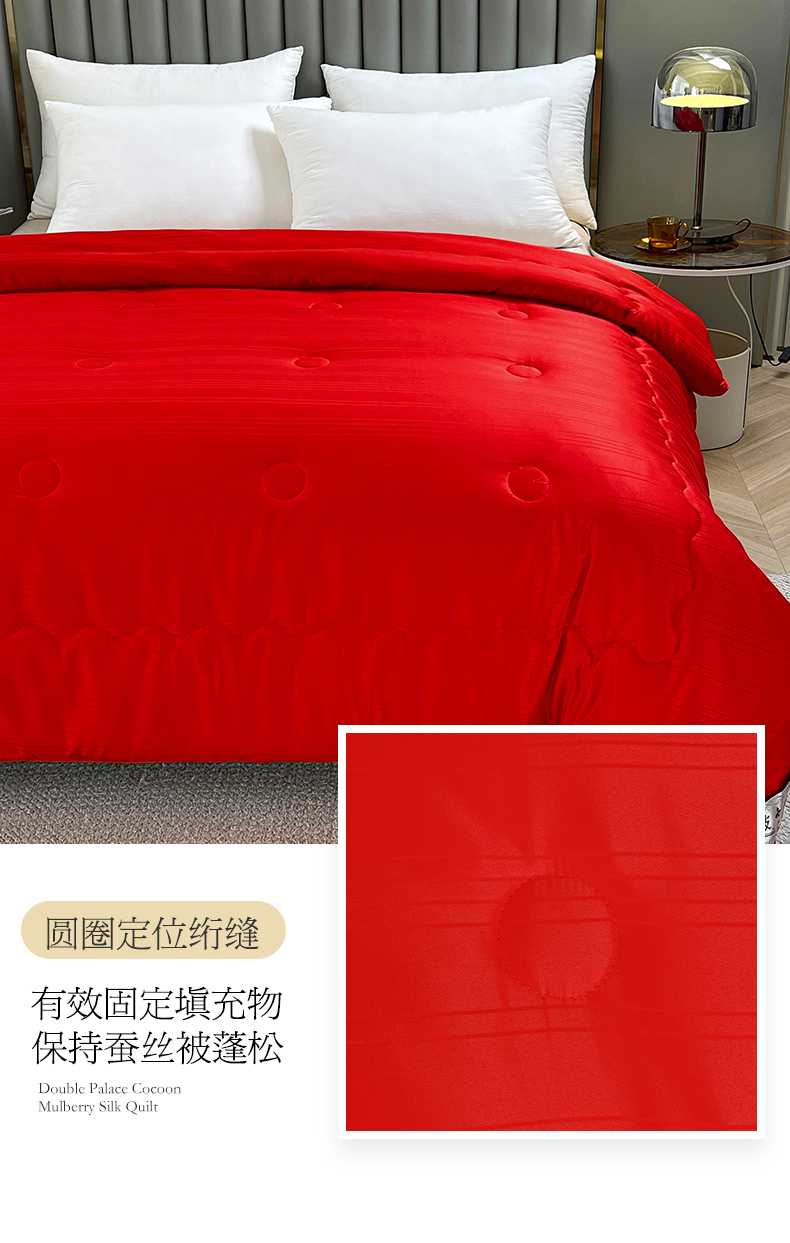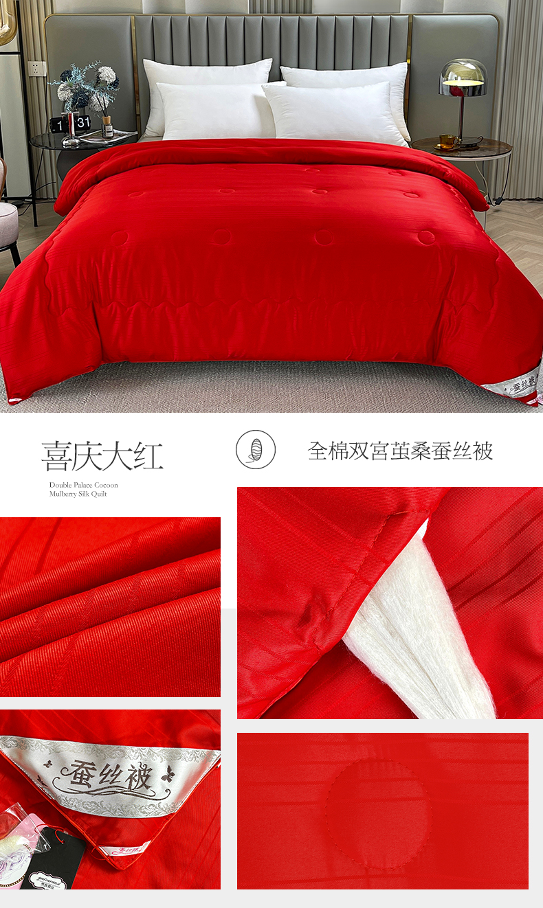 商品名称:尚品家纺 2024新款提花段条绗缝蚕丝被 喜庆大红