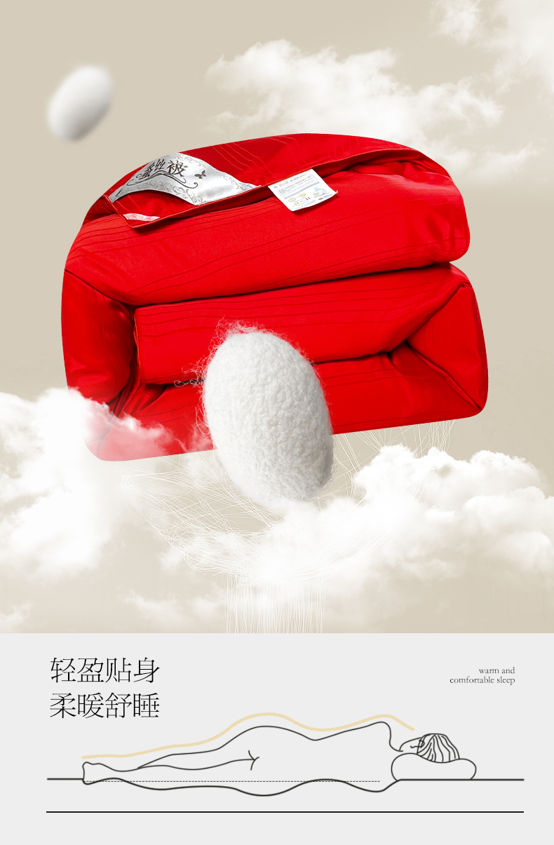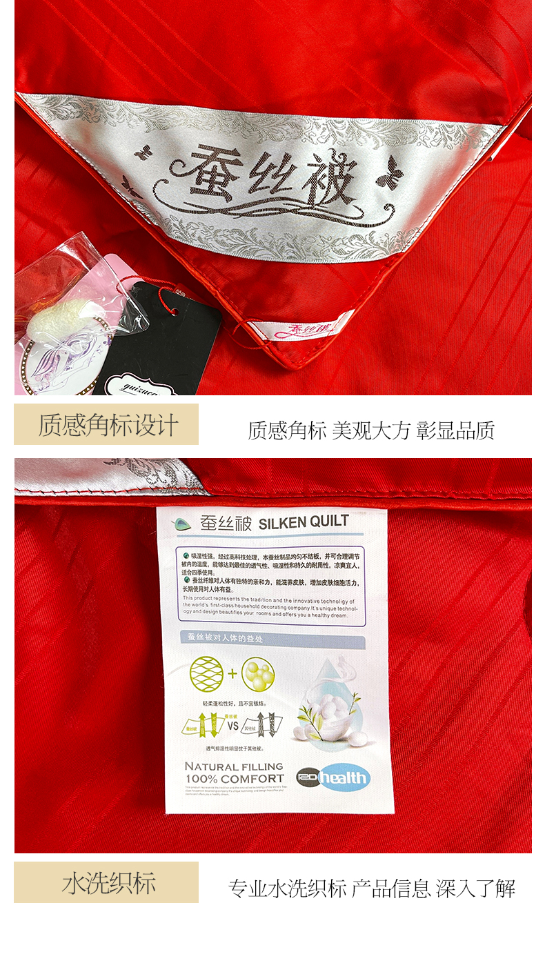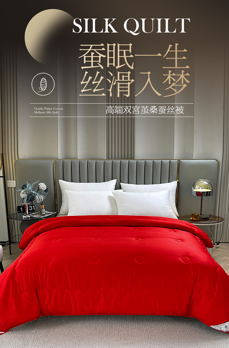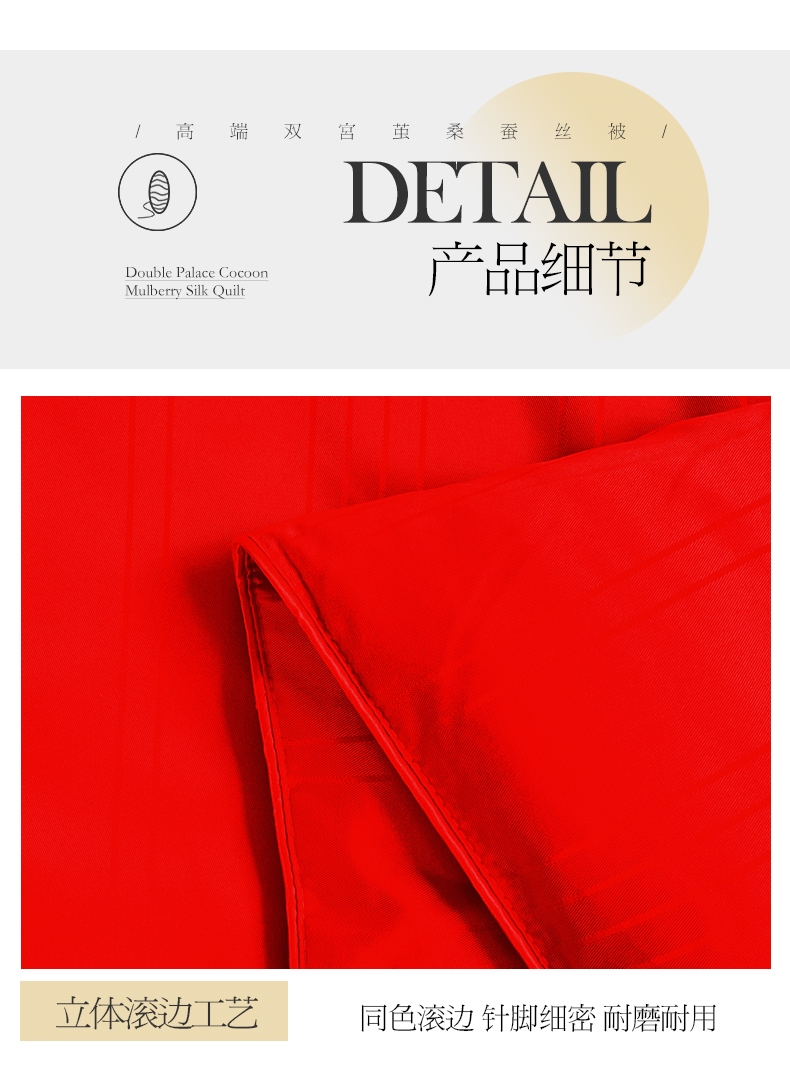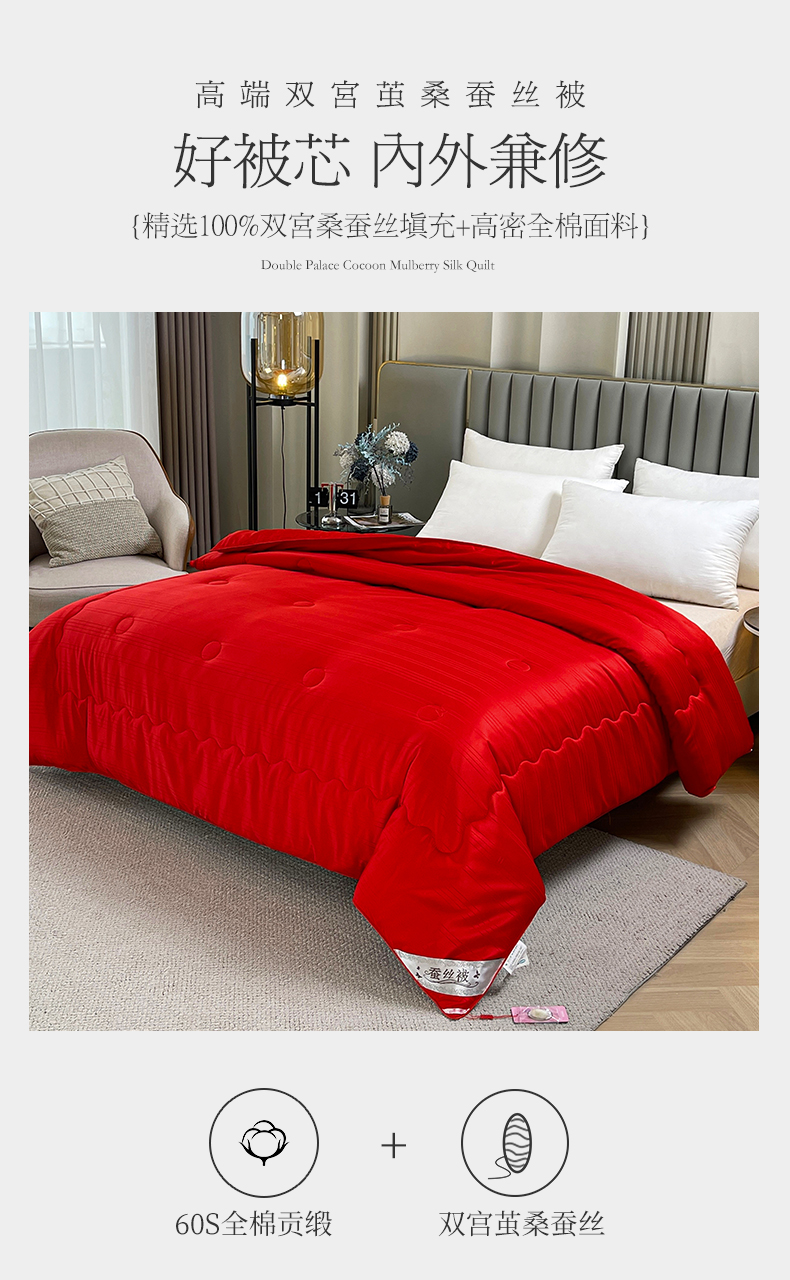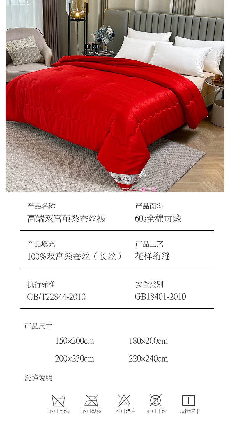 商品名称:尚品家纺 2024新款提花段条绗缝蚕丝被 喜庆大红