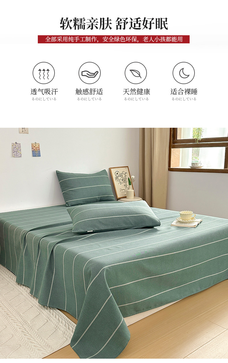 商品名称:雨洋2025新款直播爆款老粗布凉席 墨绿细条