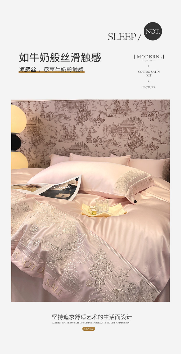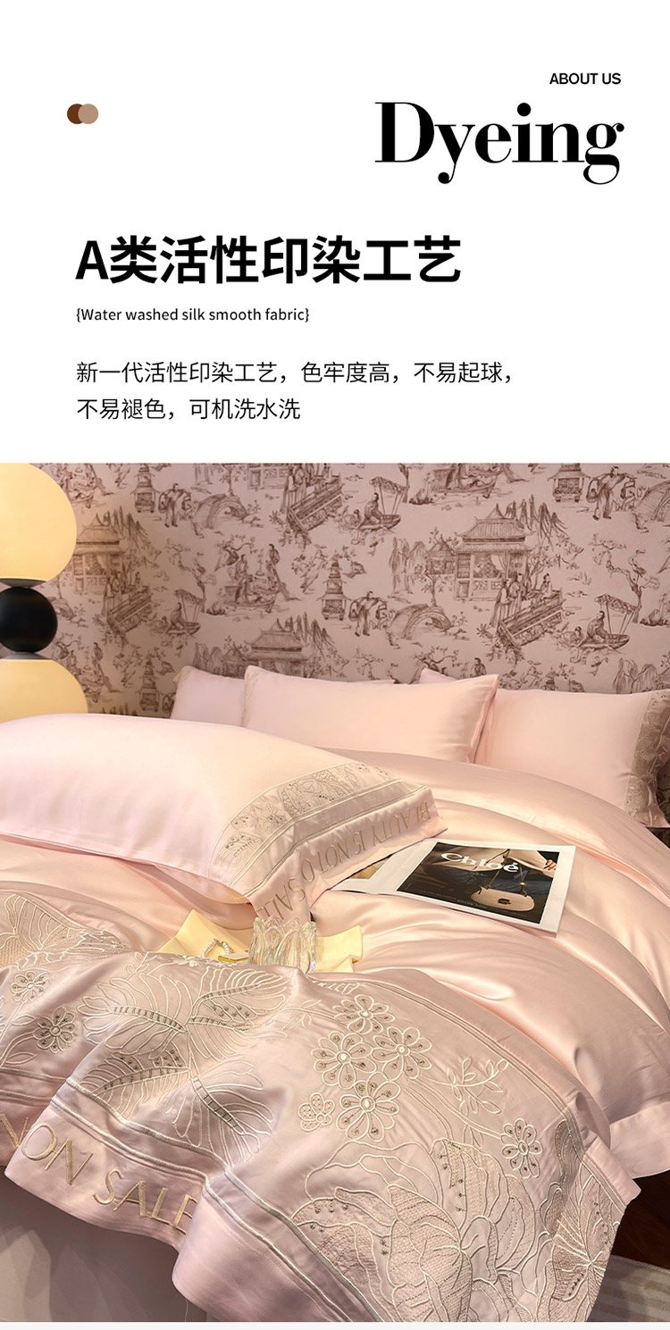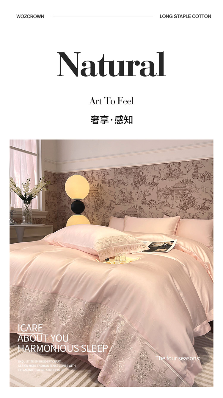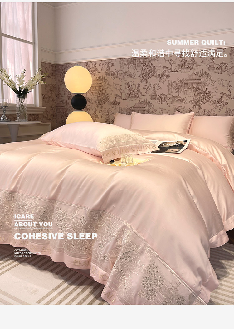 商品名称: 2024新款A类母婴级凉感真丝夏季裸睡丝滑床单床笠轻奢刺绣四件套 樱花粉
