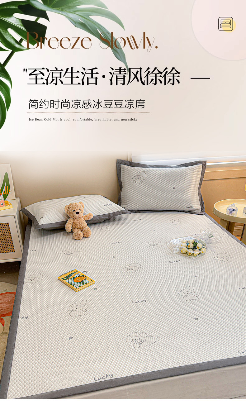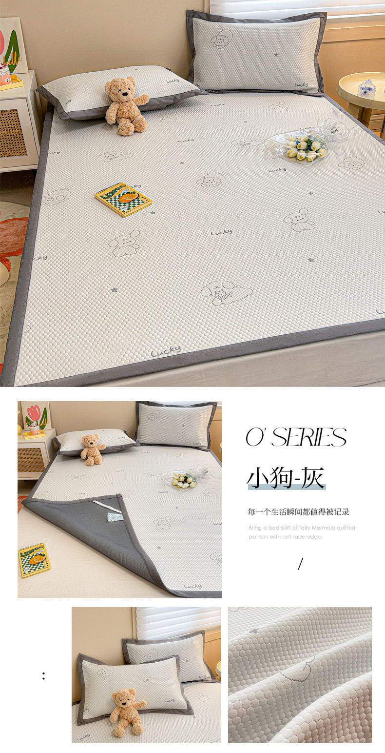 商品名称:柒月家居 2024新款PE凉感豆豆复合款凉席套件 小狗-灰