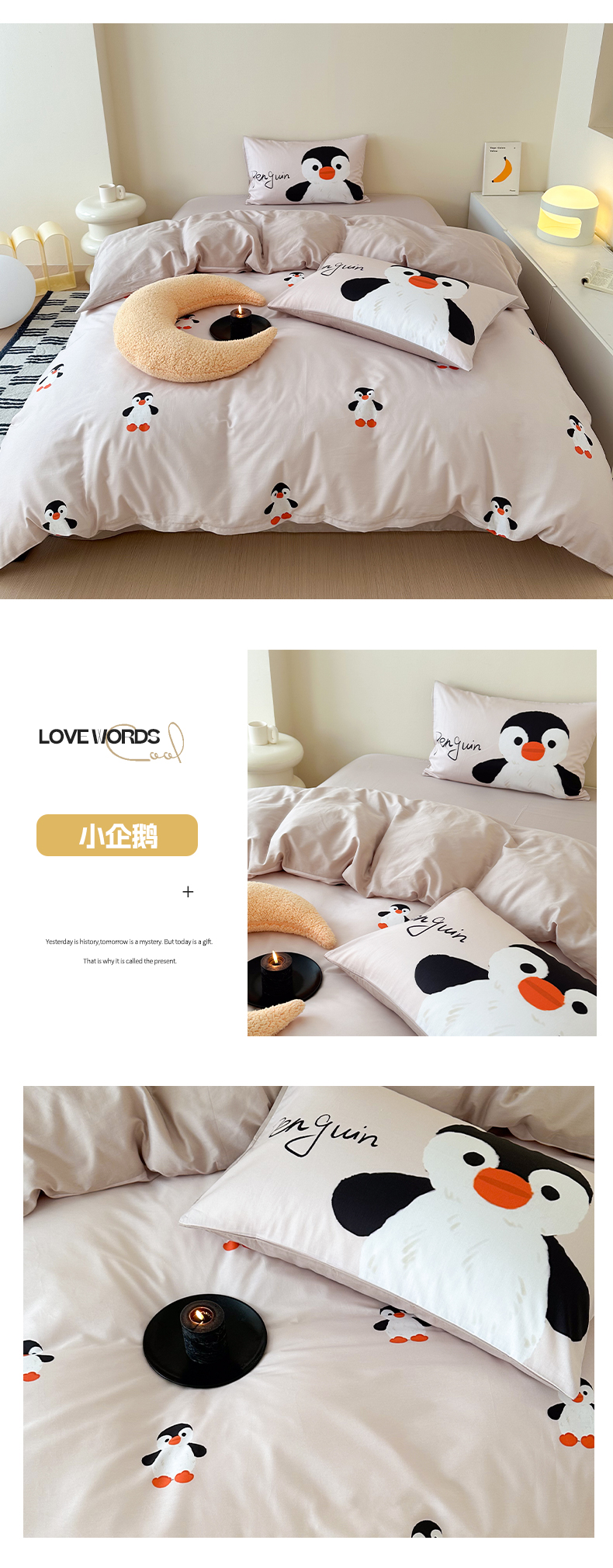 美乐迪家纺 2024ins韩风全棉四件套 小企鹅