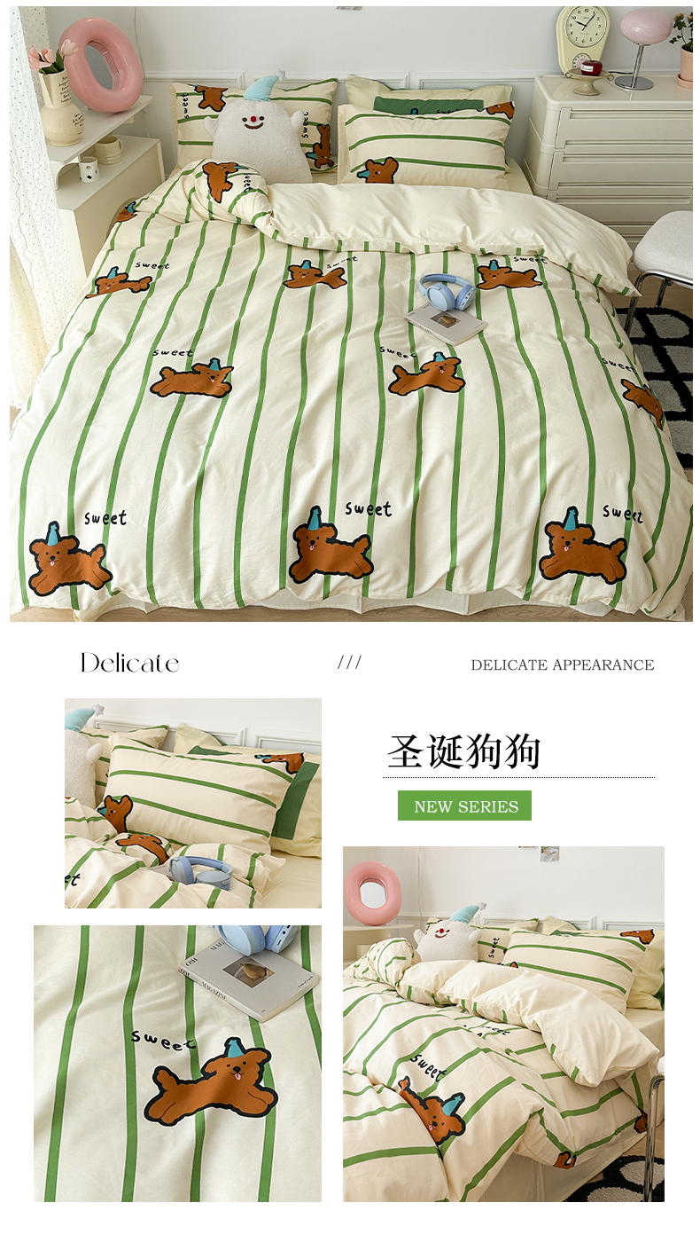 昔可家纺 2024开春新款全棉印花卡通四件套 圣诞狗狗