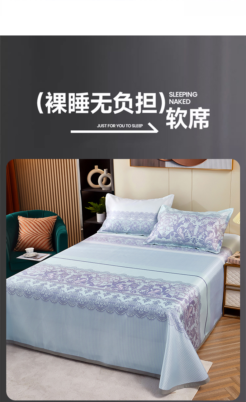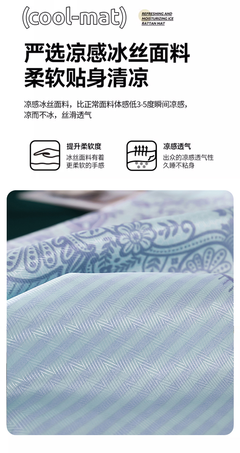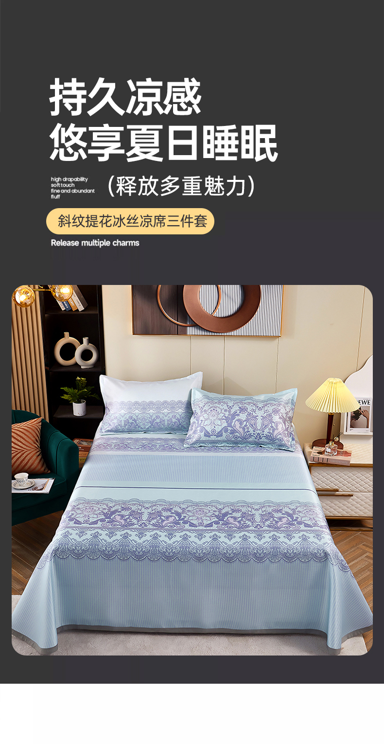 (总)星窝家纺 2025新款直播电商优选可机洗斜纹提花冰丝凉席三件套