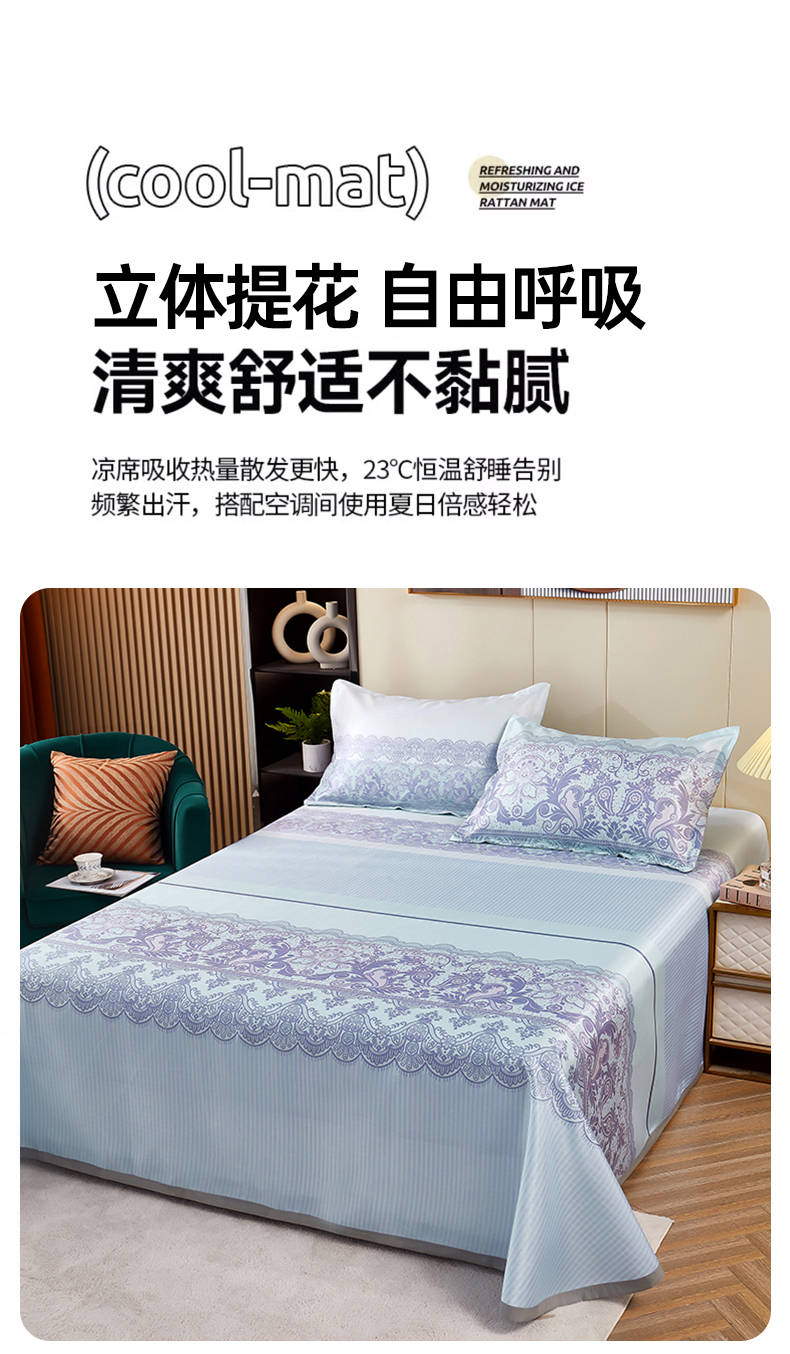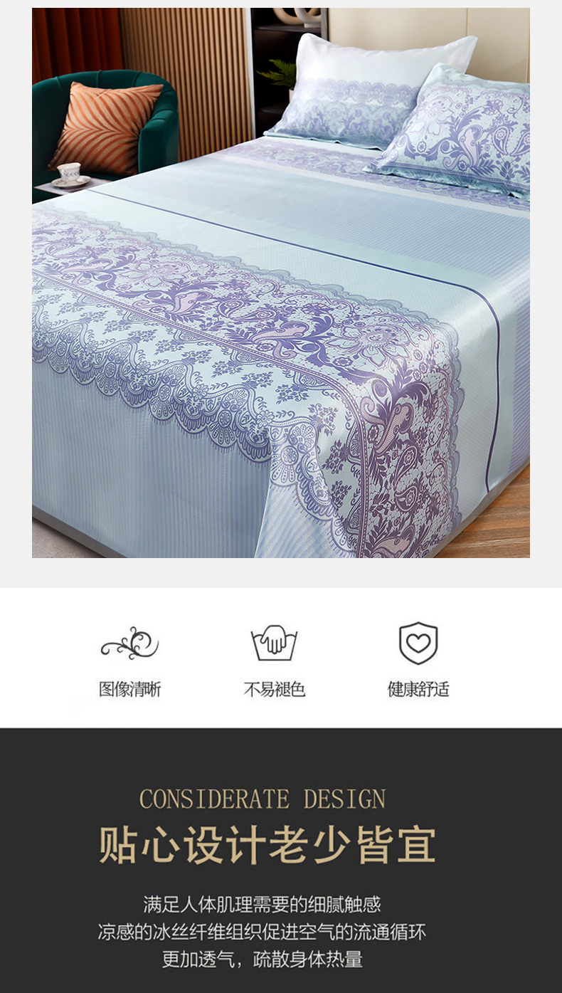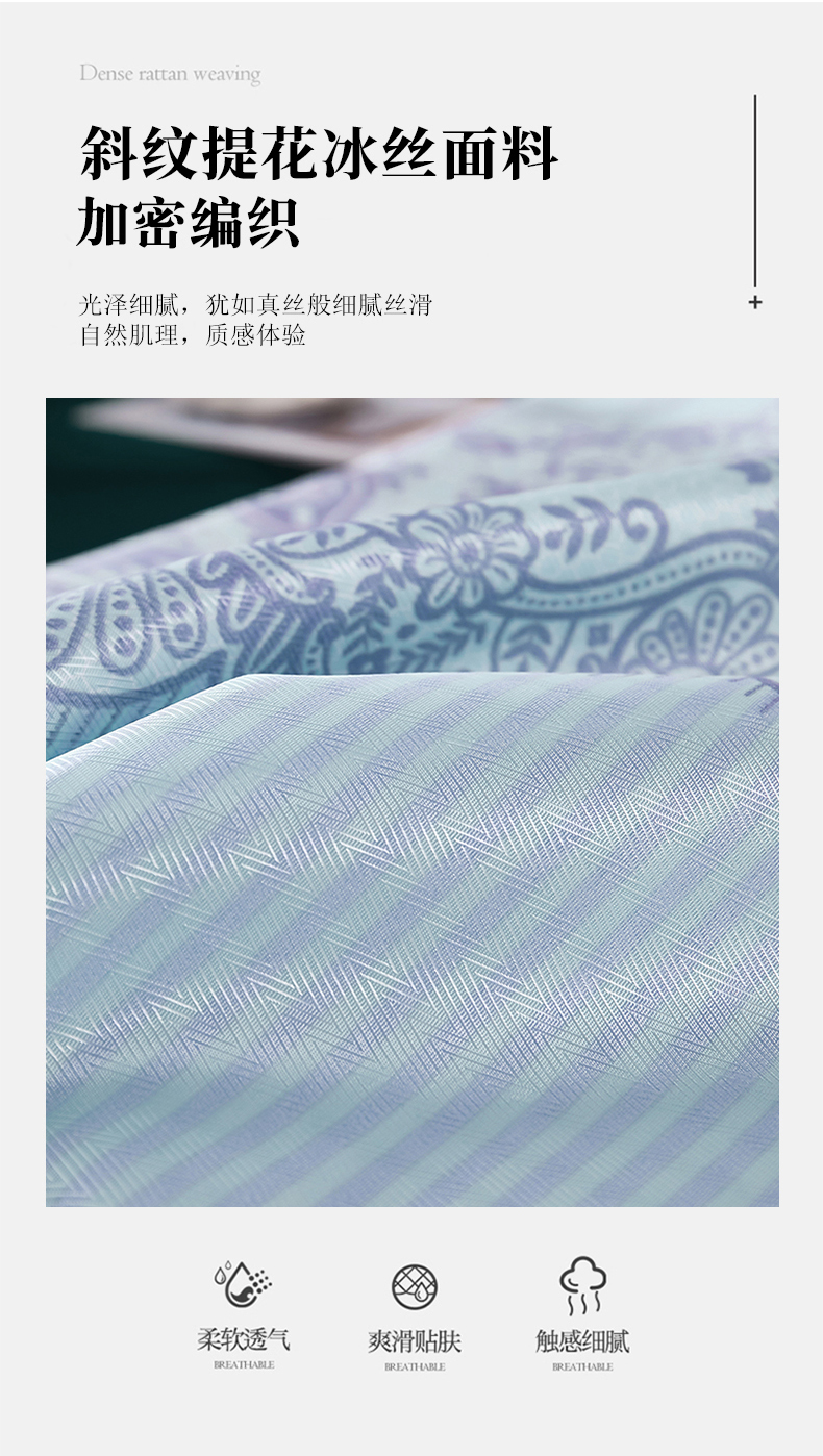 (总)星窝家纺 2025新款直播电商优选可机洗斜纹提花冰丝凉席三件套
