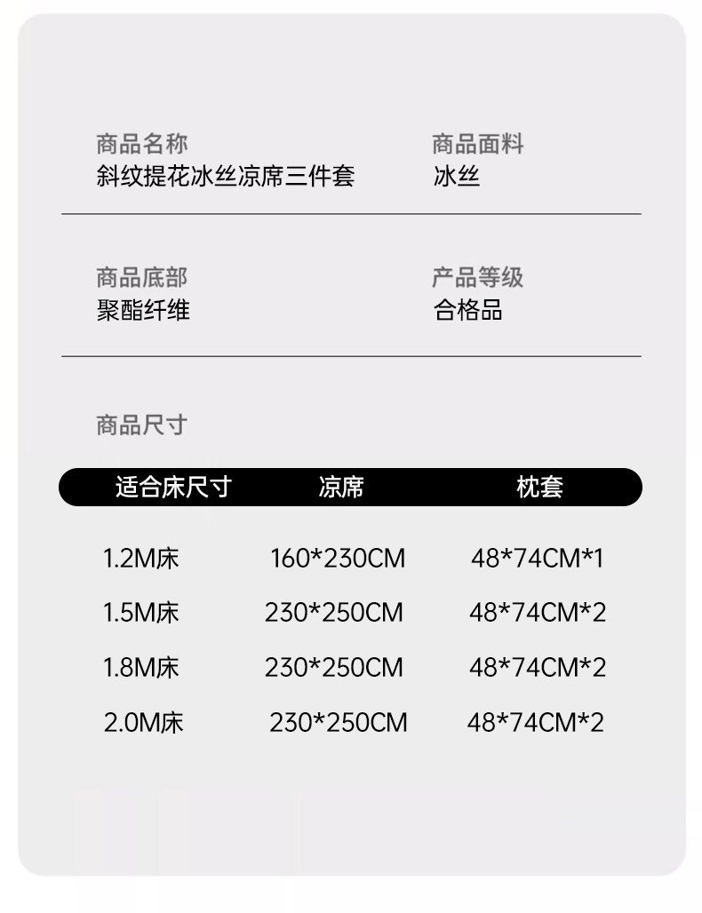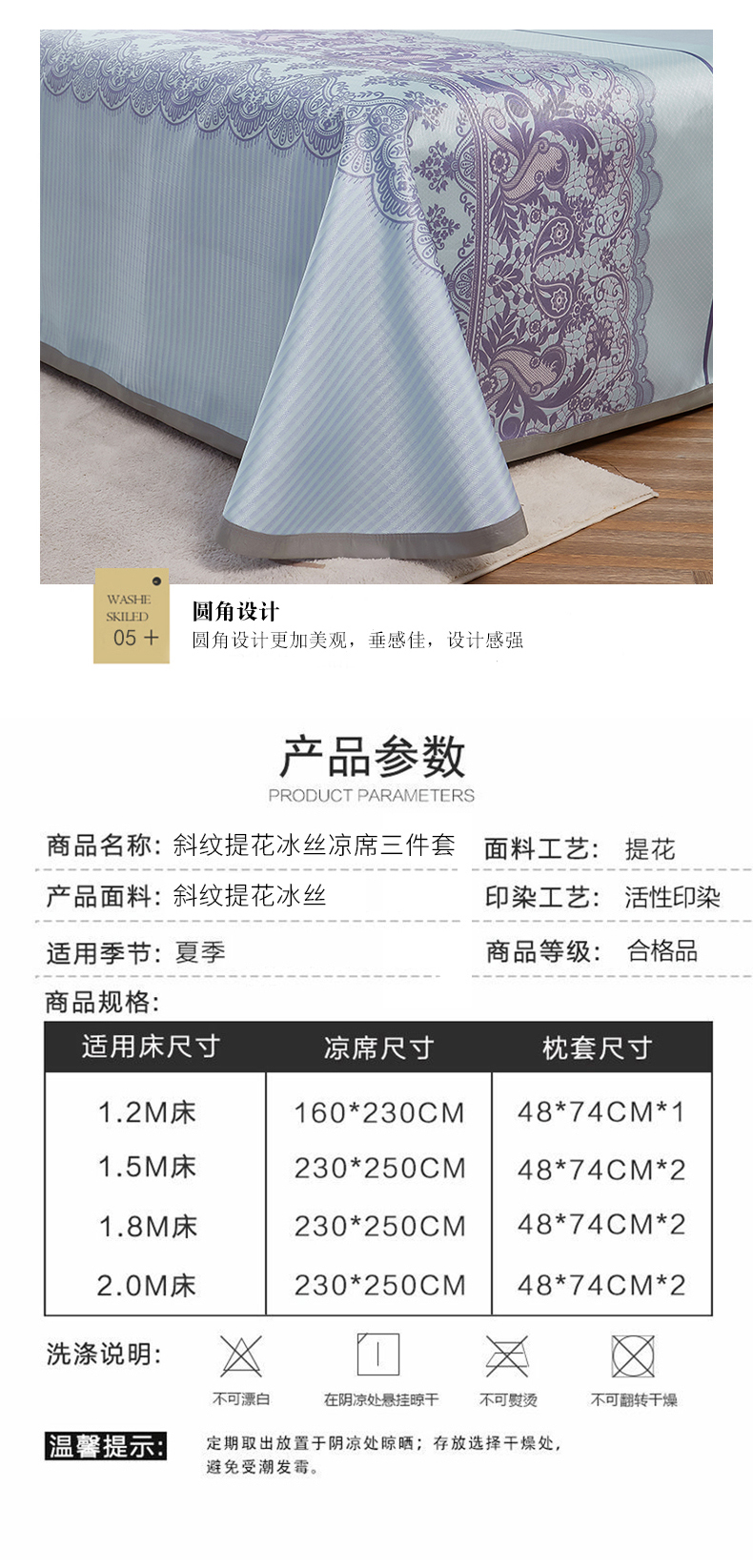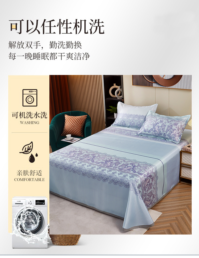 商品名称:(总)星窝家纺 2025新款直播电商优选可机洗斜纹提花冰丝凉席三件套
