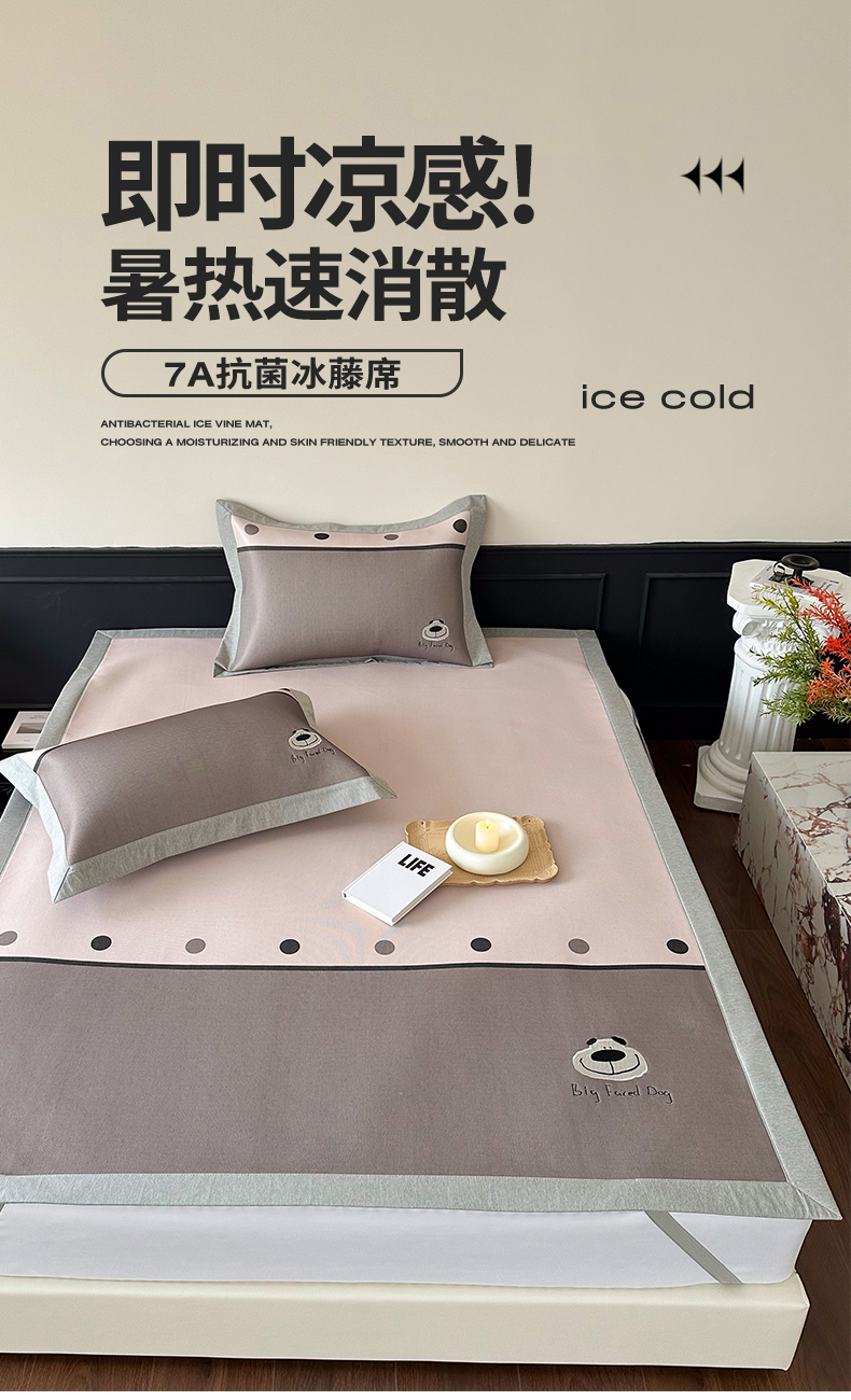 甜梦 2024新款母婴级7A抗菌养生冰藤席影棚1—平席款 可爱狗狗-平席款
