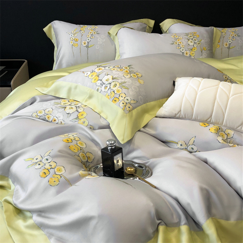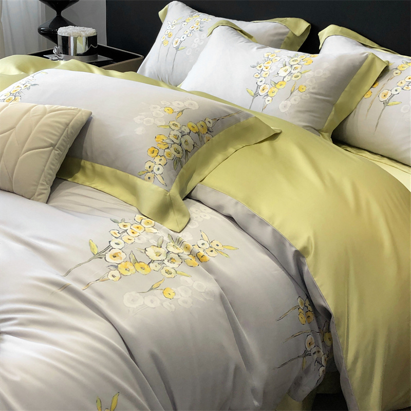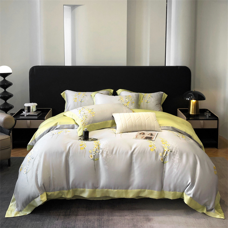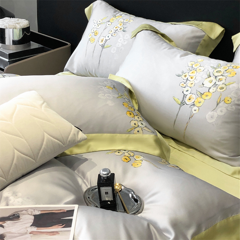 (总)佳汐蓝家纺 2025新款春夏新品TENCEL兰精天丝四件套绣花系列,墨菲花园·珍珠绿