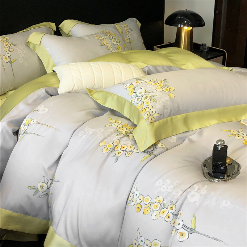 (总)佳汐蓝家纺 2025新款100支贡缎提花全棉刺绣婚庆四件套-繁花佩影,繁花佩影