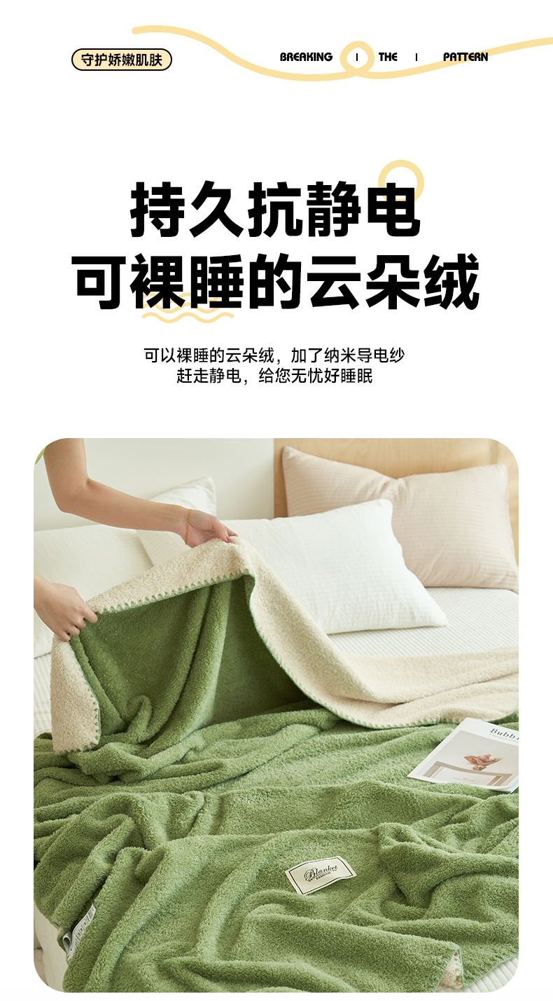 商品名称:艾佳 2025新款双面云朵绒四季毯多功能撸猫毯 云朵绒毯 薄荷绿白