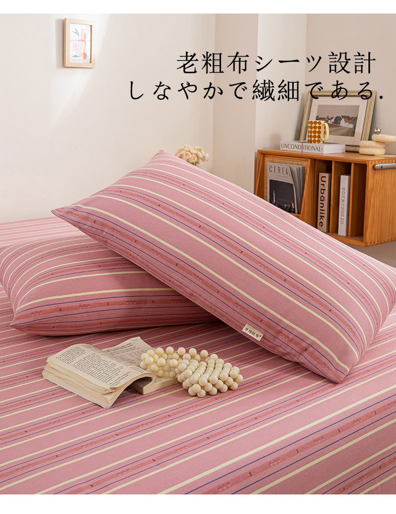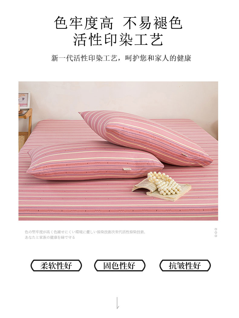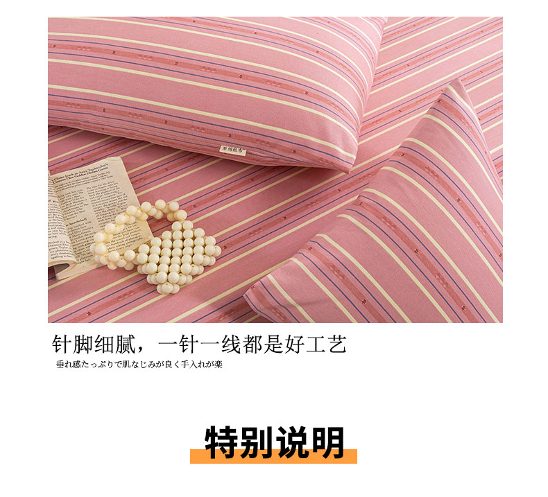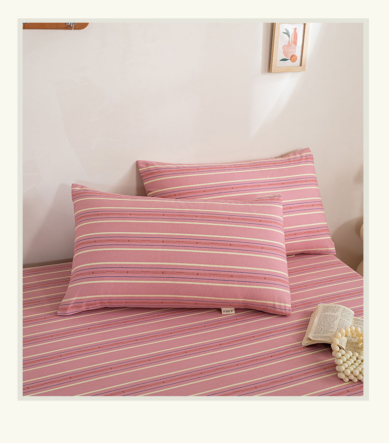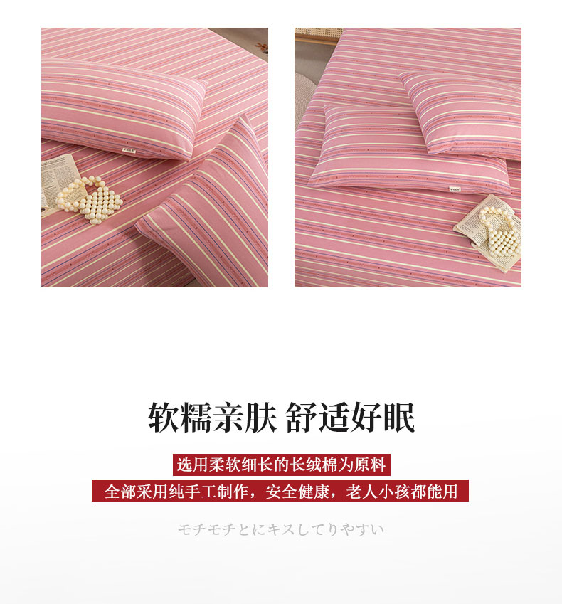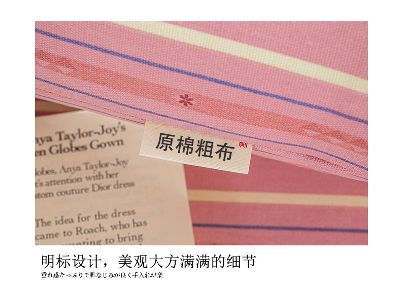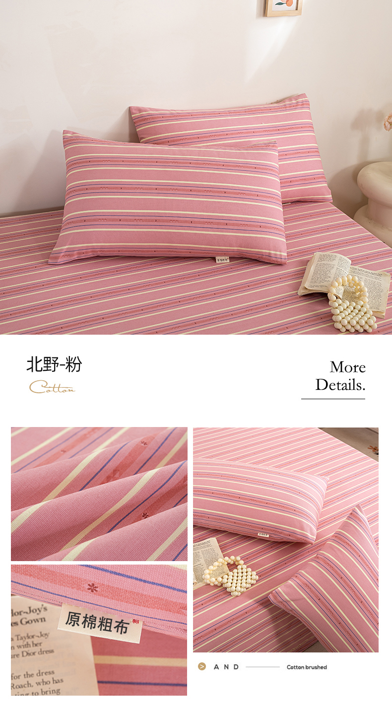 商品名称:鸣升 新款舒适透气100%全棉老粗布枕套 北野-粉