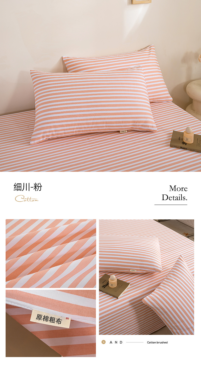 鸣升 新款舒适透气100%全棉老粗布枕套 细川(粉