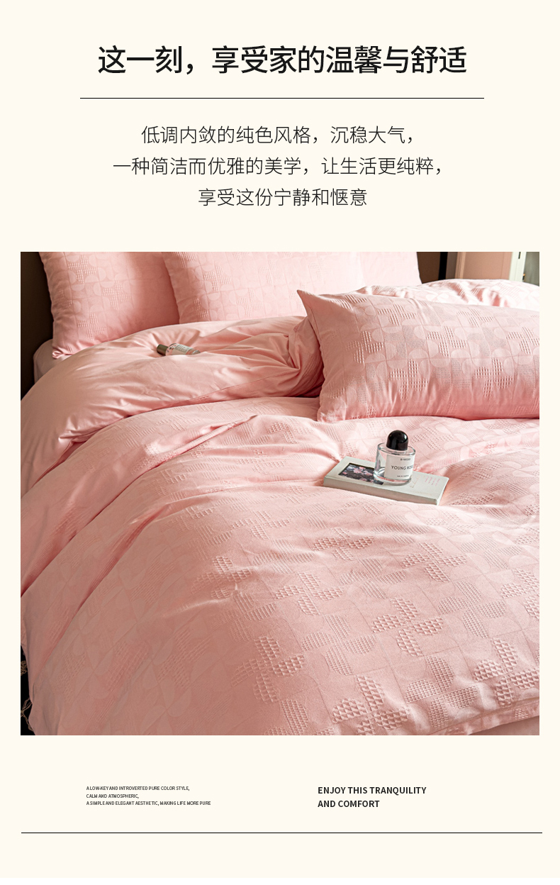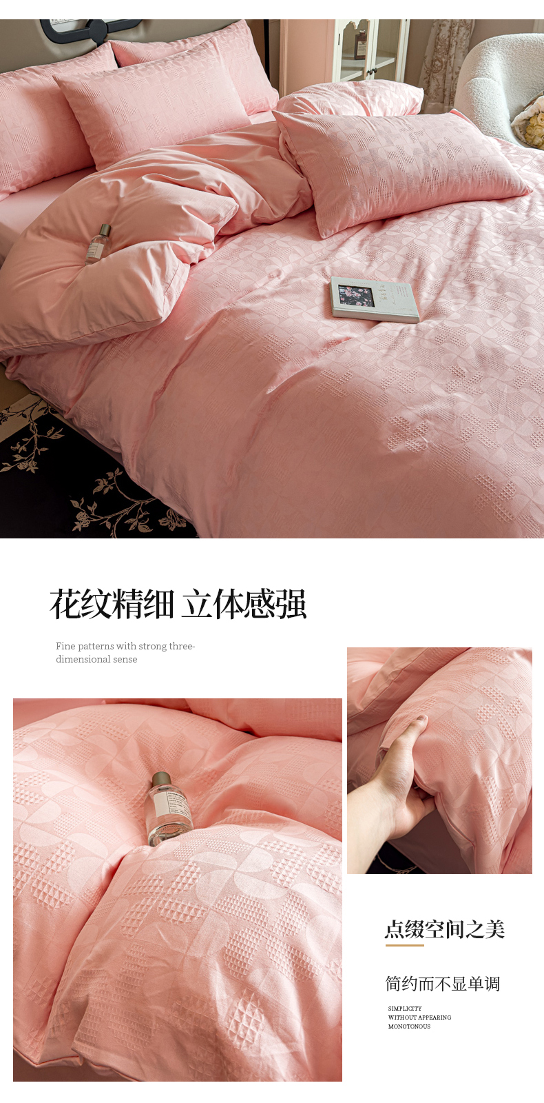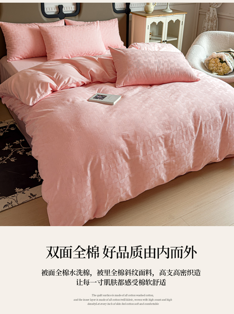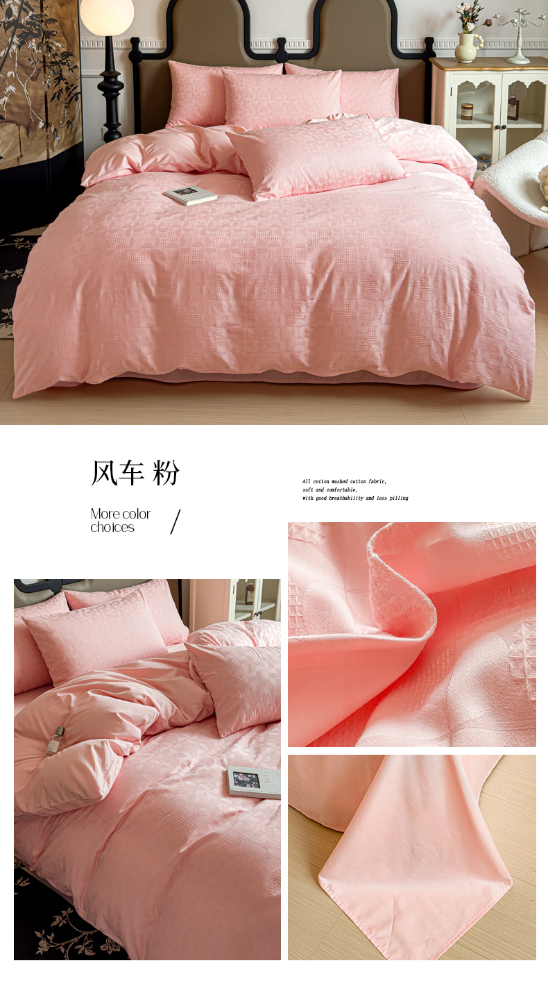 商品名称:金丝鸟家纺 2024新款棉水洗棉纯色提花四件套 风车 粉