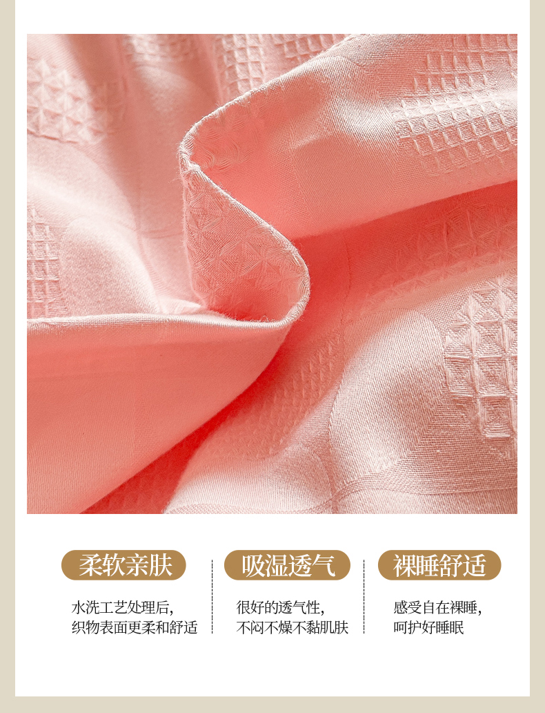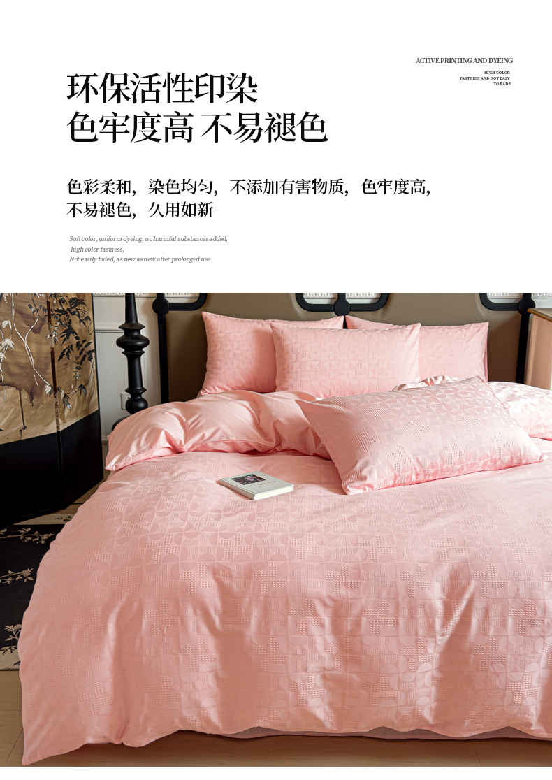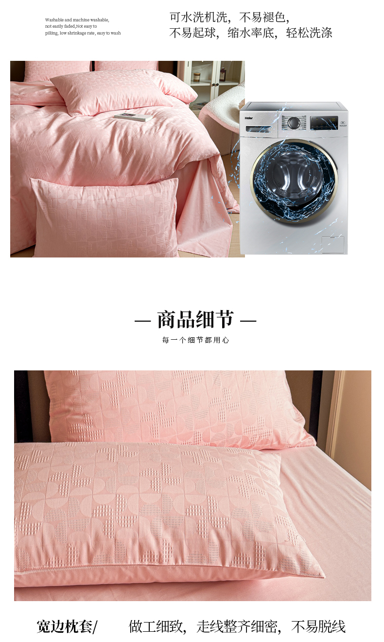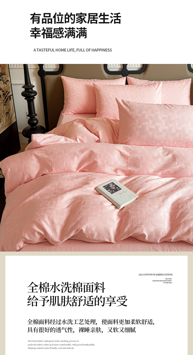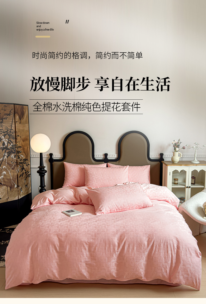 商品名称:金丝鸟家纺 2024新款棉水洗棉纯色提花四件套 风车 粉