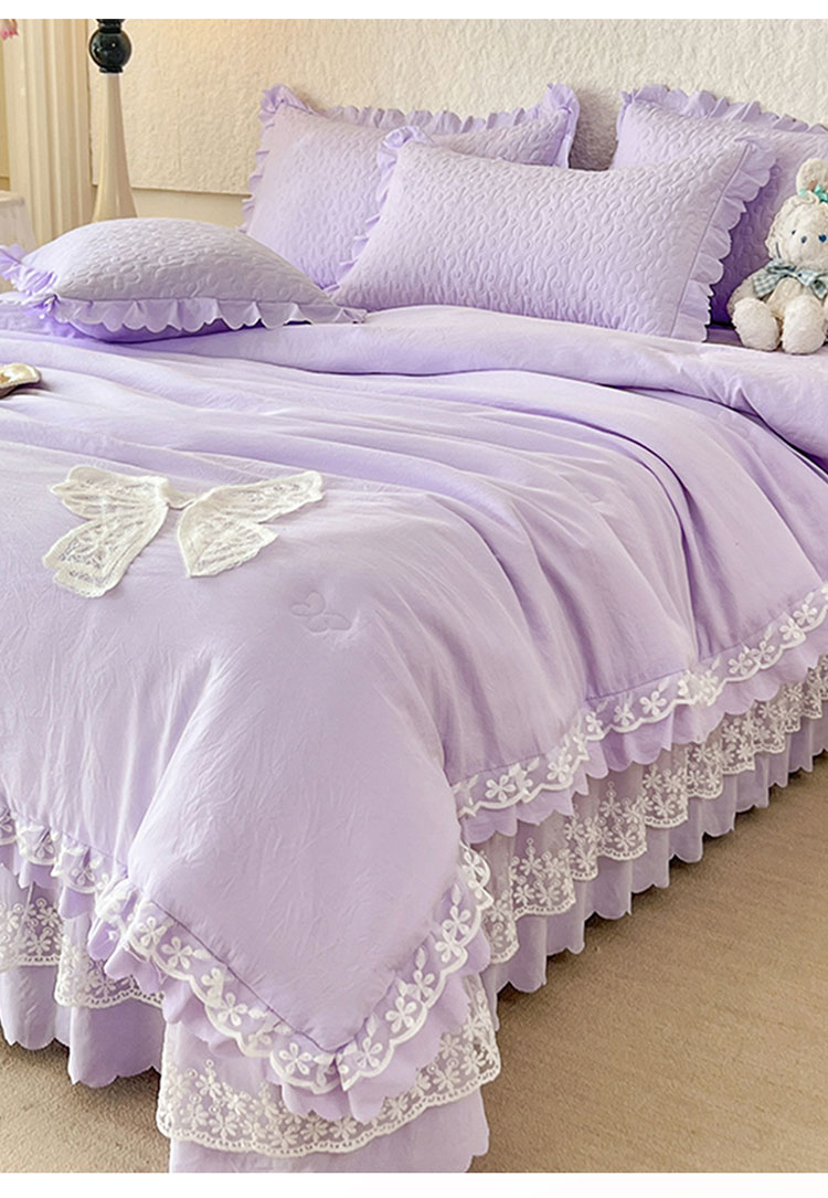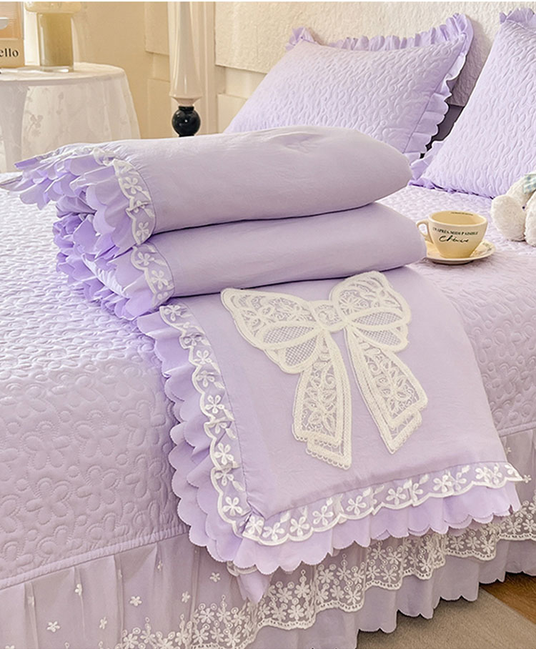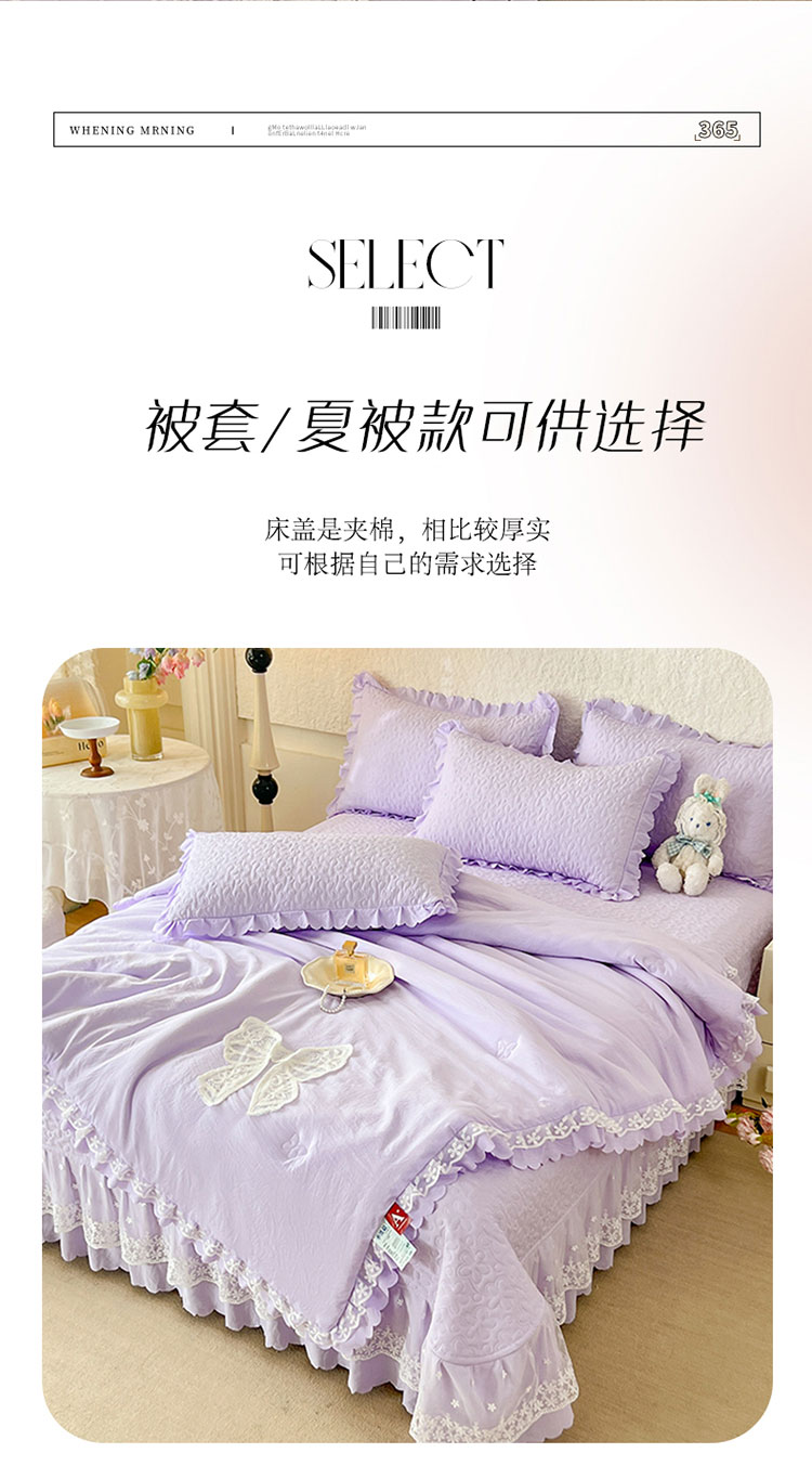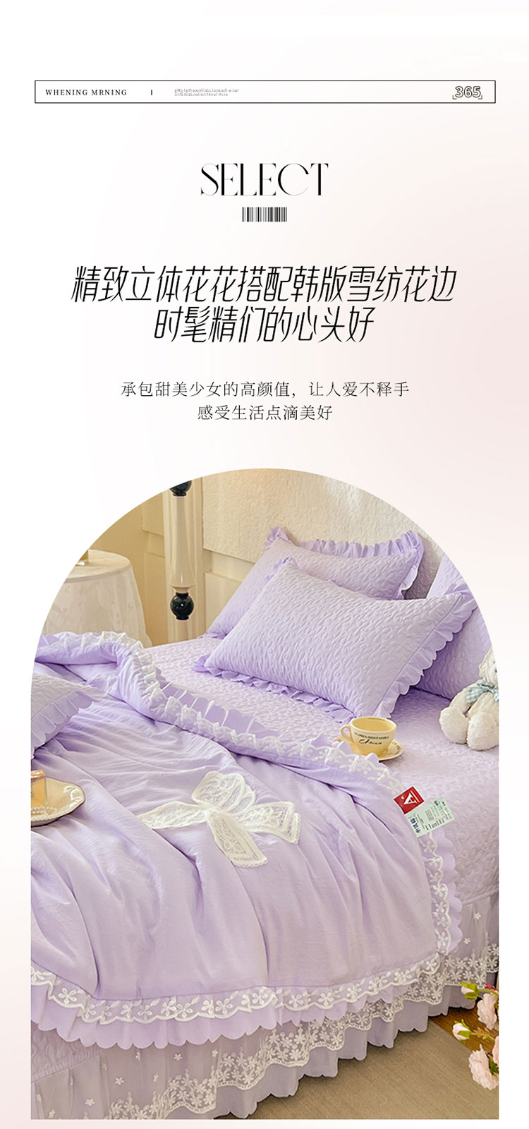 (总)2025韩版少女心法式公主风水洗棉蕾丝花边夏被床盖款四件套泡泡棉小竺棉凉蝴蝶结夏被床盖款四件套