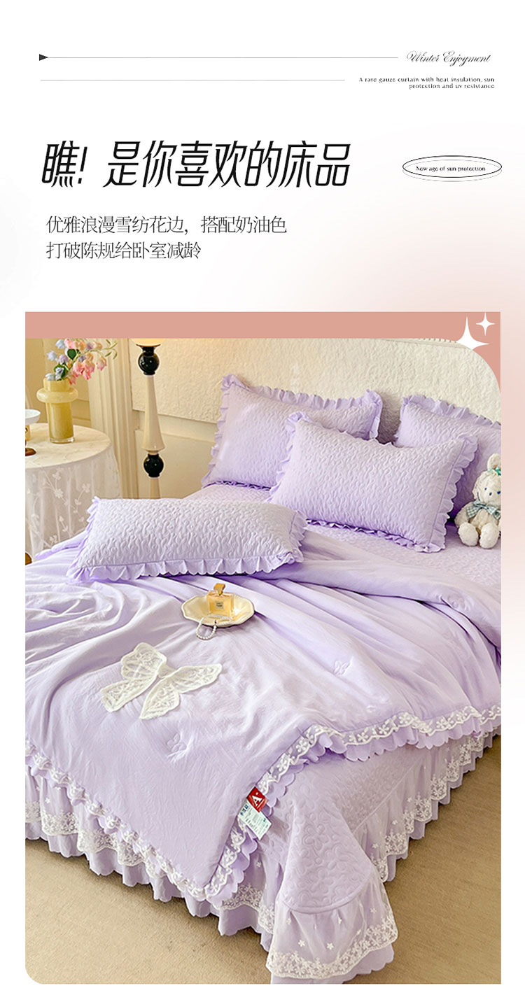 漫布云2025秋冬新款11斤230g全消光牛奶绒夹棉床盖款四件套纯色蕾丝花边刺绣床裙款床盖,蝶恋花-梦幻紫, 蝶恋花-嫩黄, 蝶恋花-新芽绿 ,蝶恋花-婴儿蓝 ,蝶恋花-樱花粉