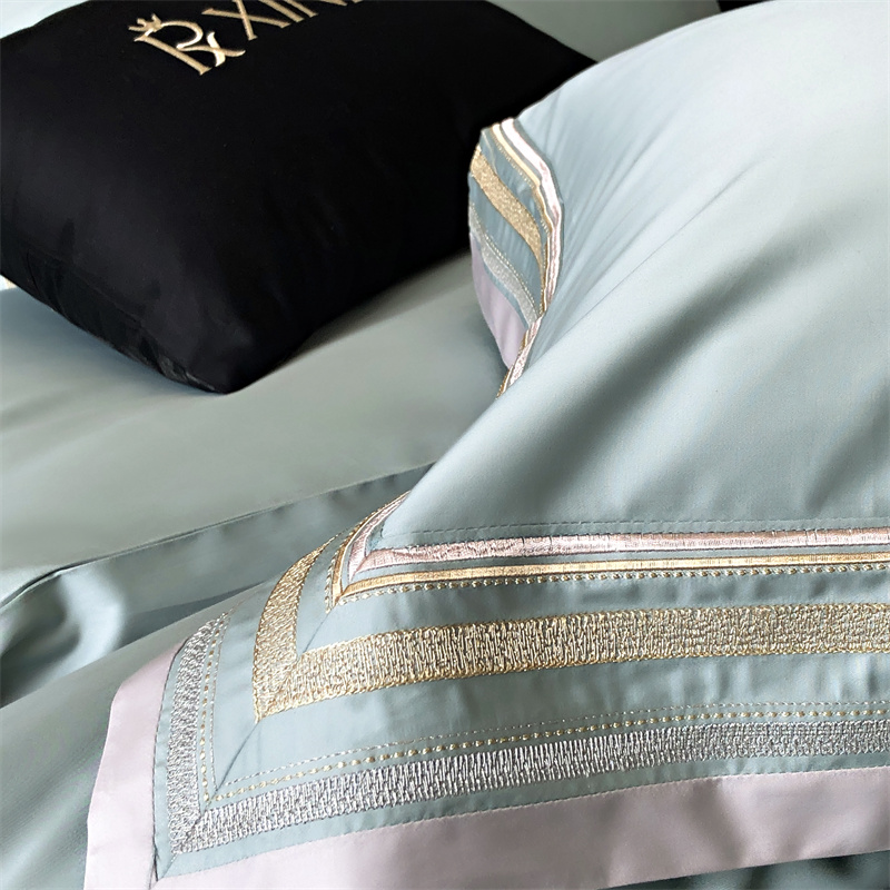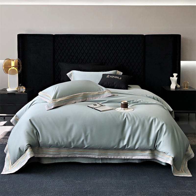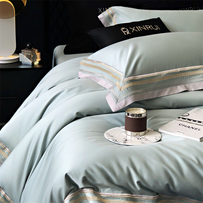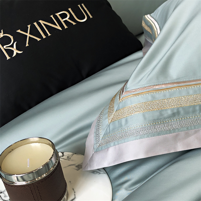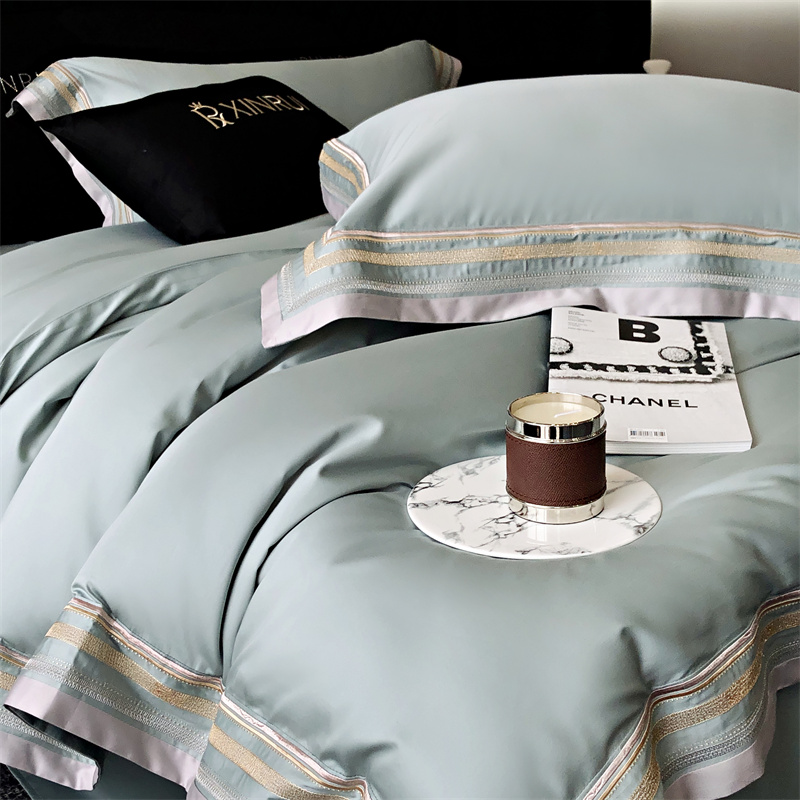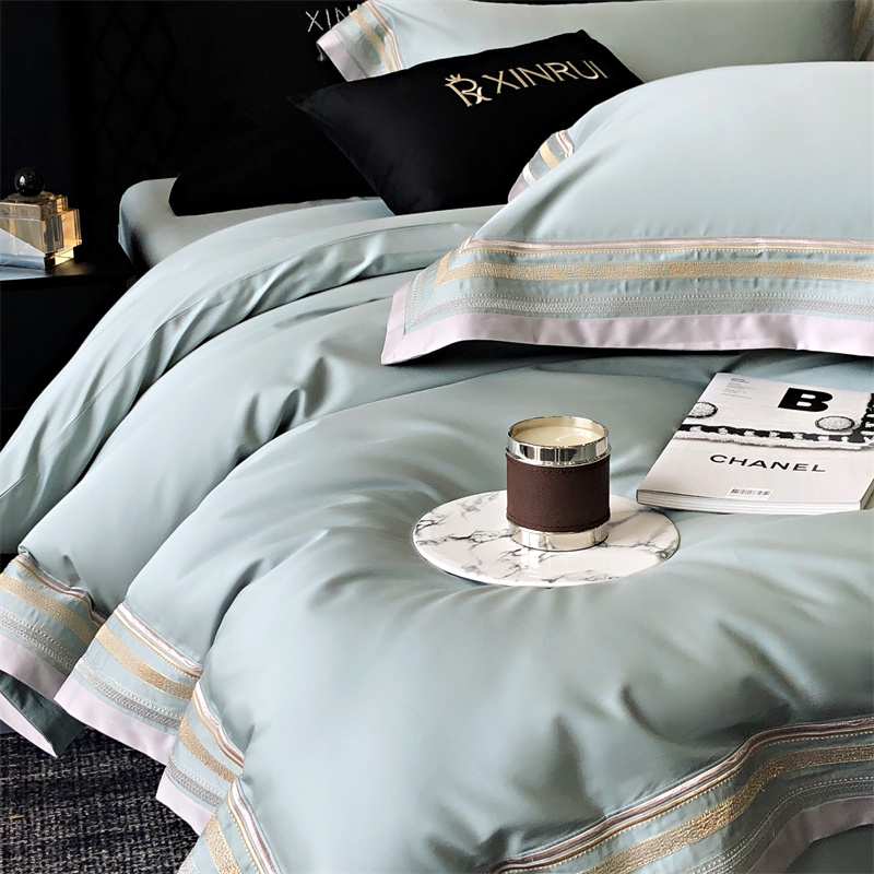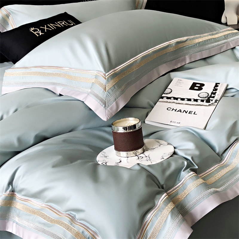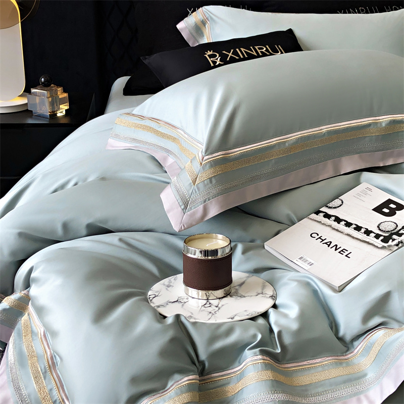 馨蕊家居 2024新款80s兰精天丝刺绣四件套-露晞 天丝露晞-北卡蓝