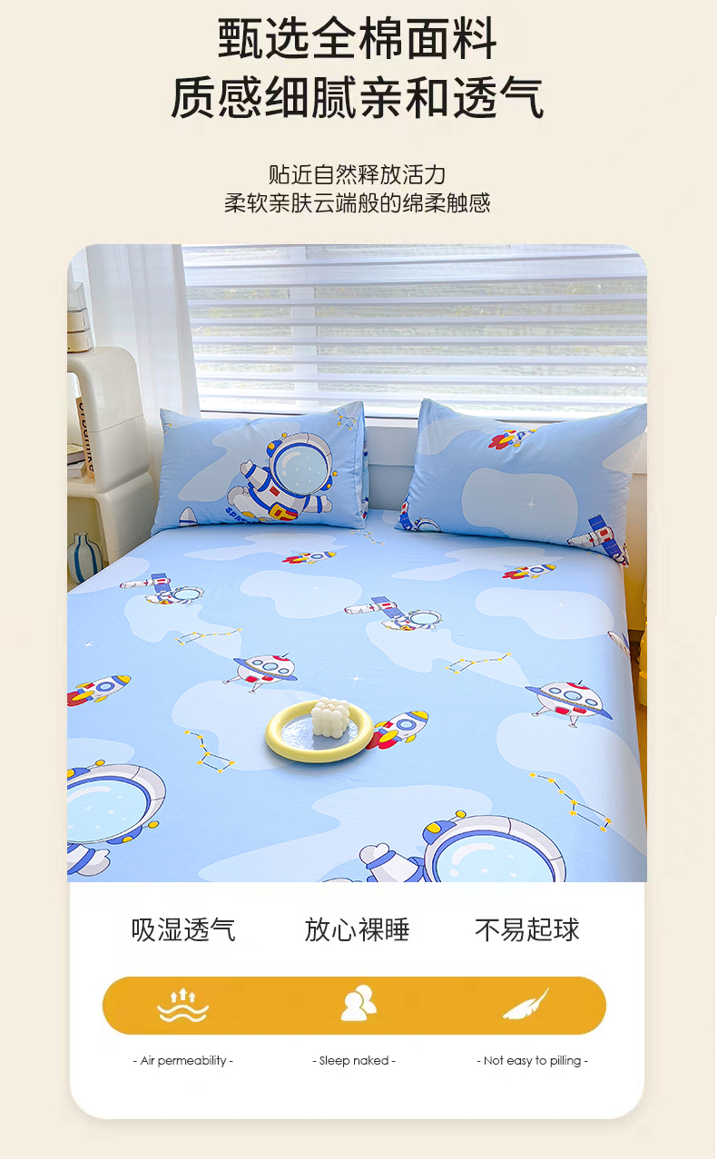 商品名称:金鑫汇家纺 2024新款全棉卡通印花单品床笠系列 星际穿越