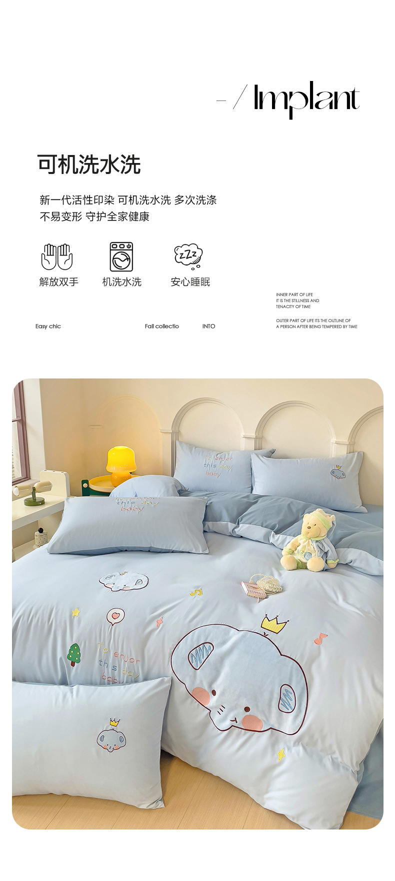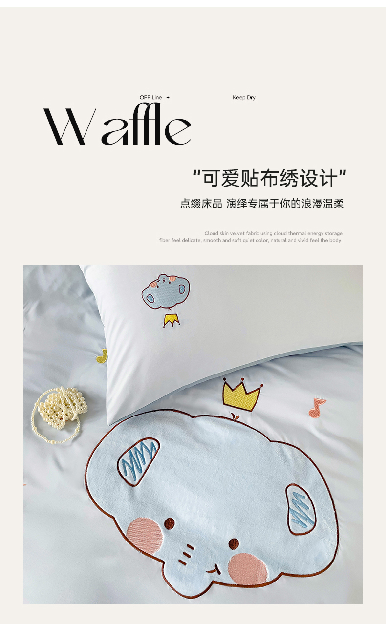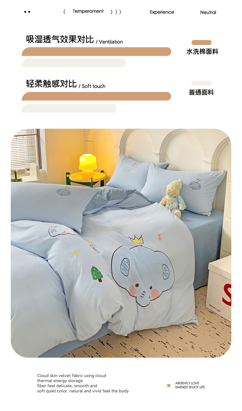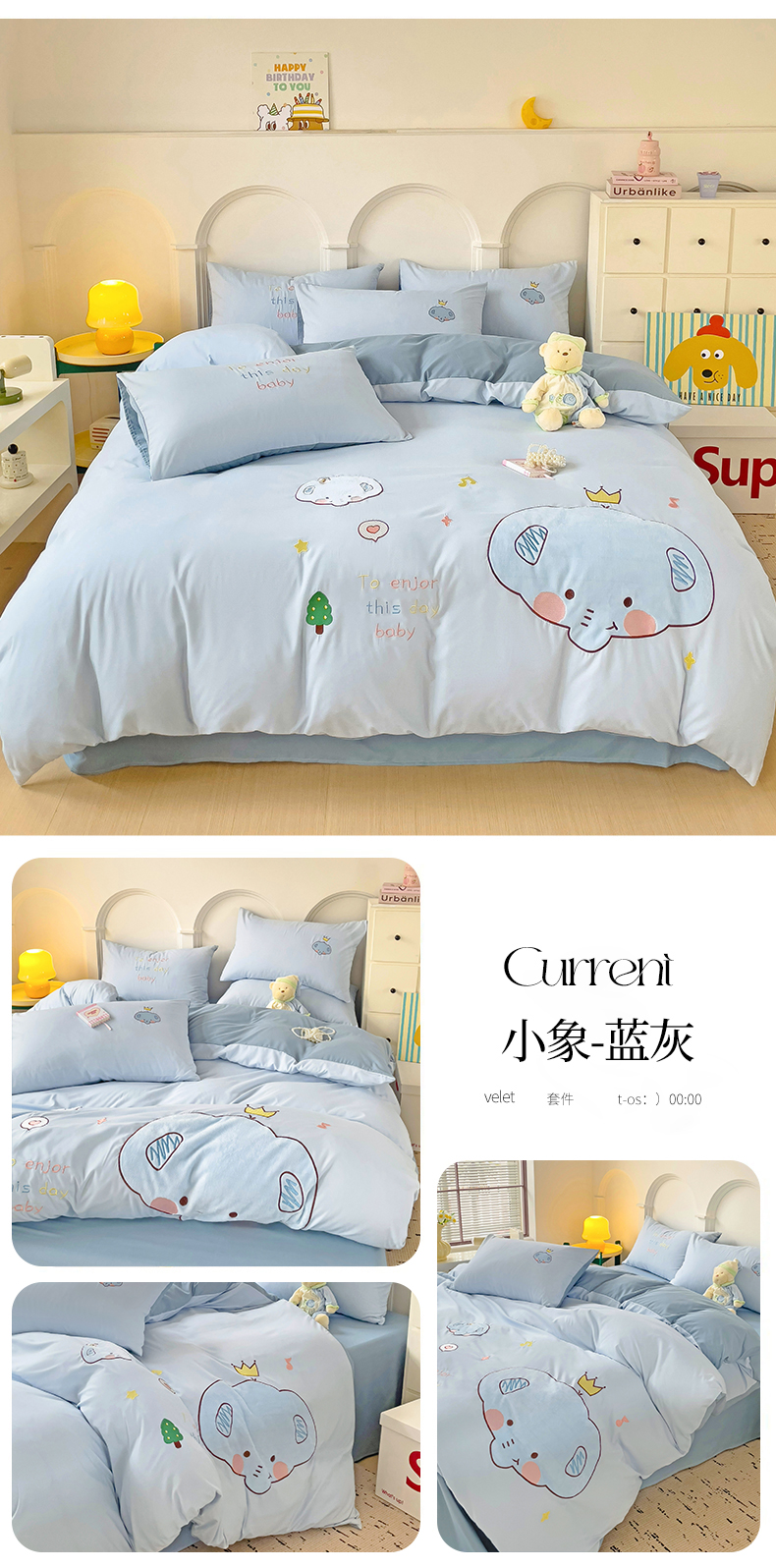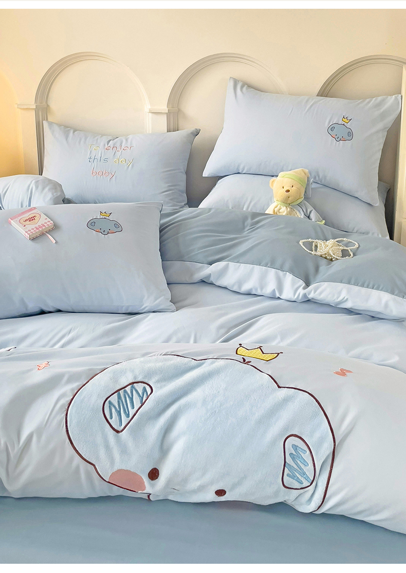 当前位置: 91家纺网 > 商品网购 > 床品套件 > 四件套 > 水洗棉四件套 > 我心家纺 2024新款水洗棉贴布绣四件套-小象 小象-蓝灰