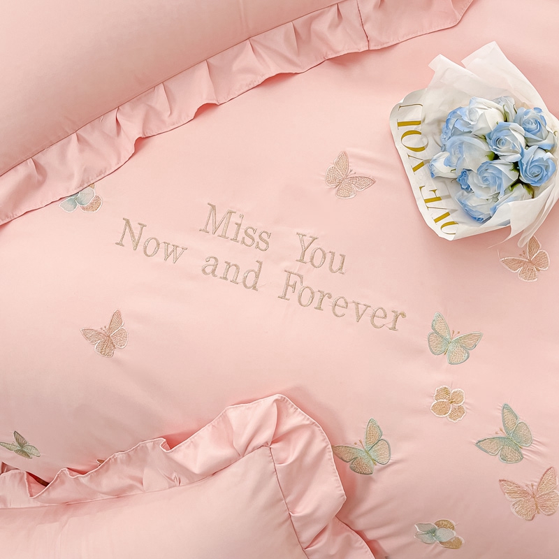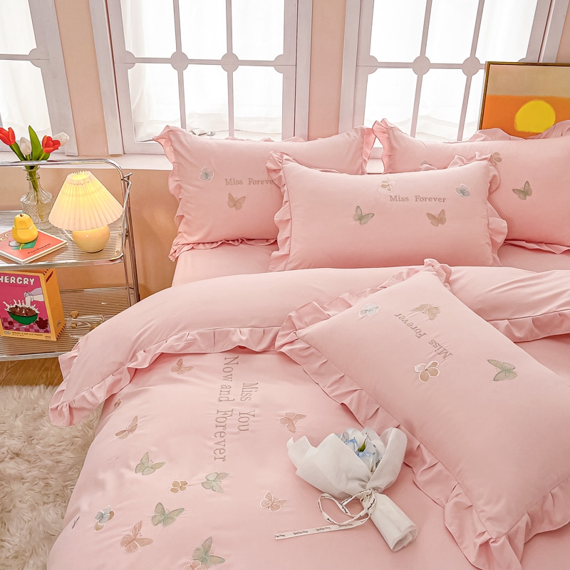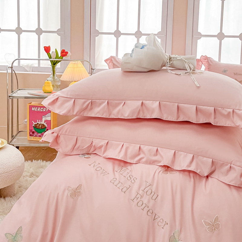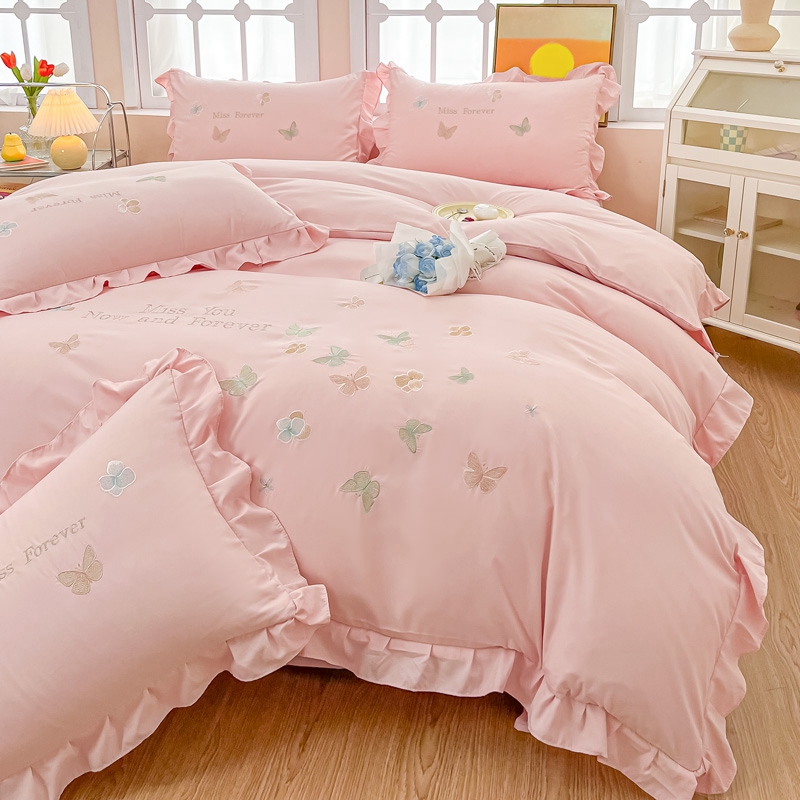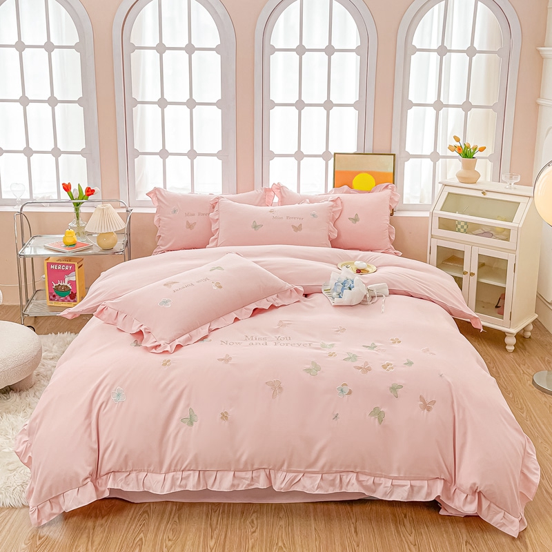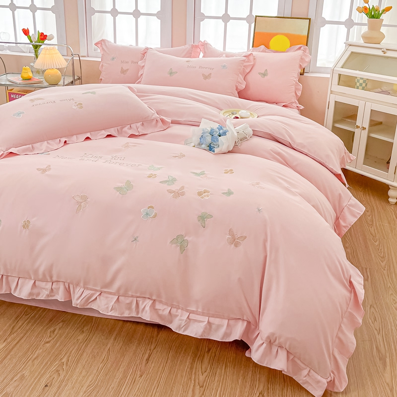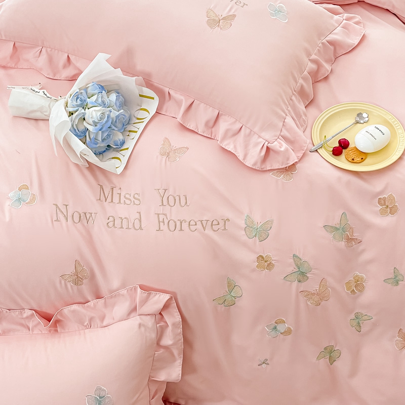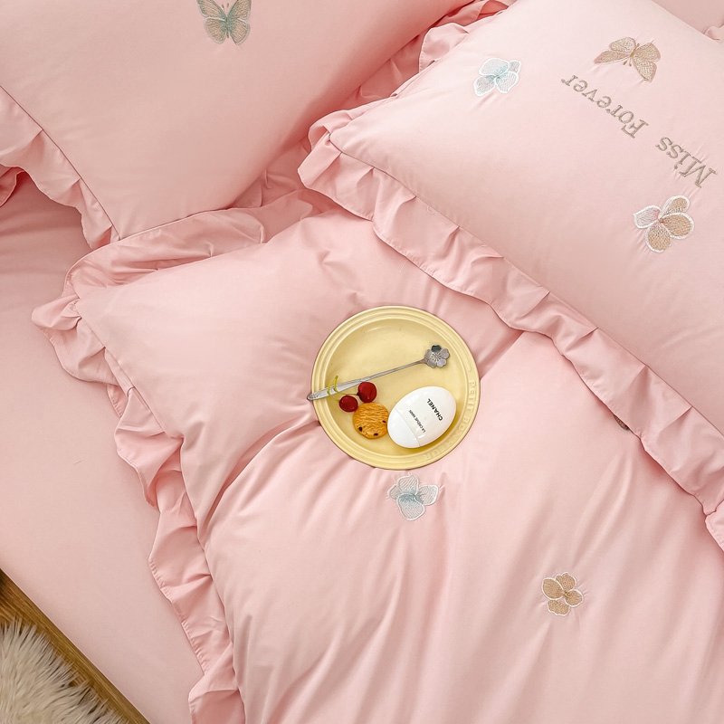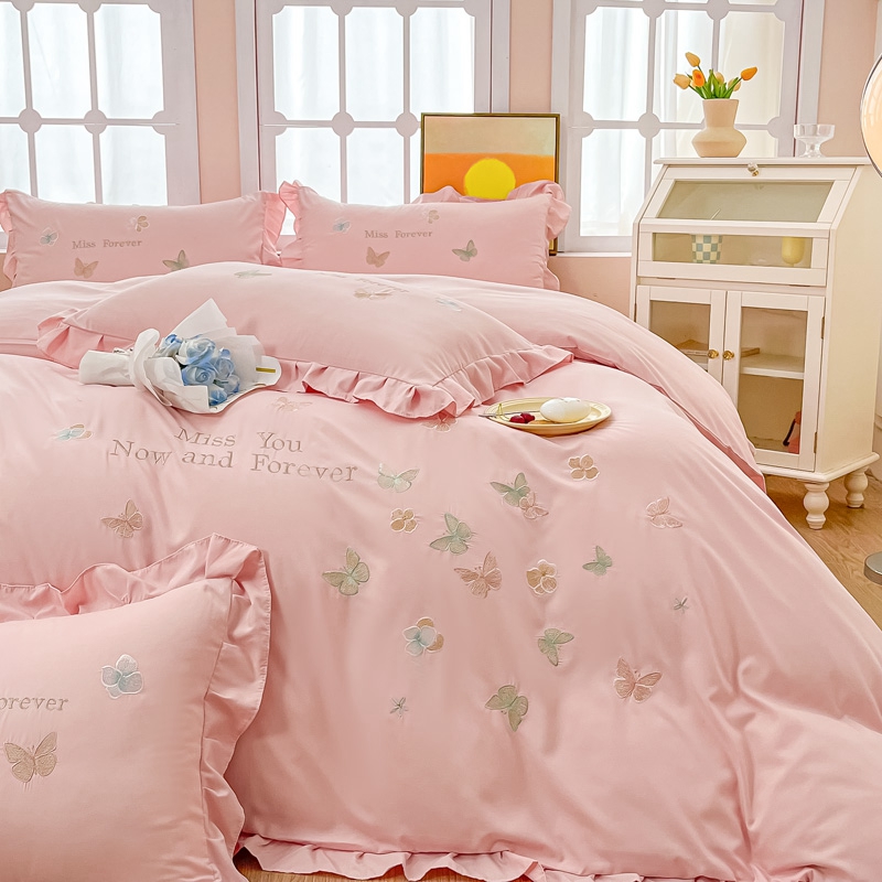 商品名称:梧桐家居 2024新款亲肤棉花边四件套-蝶羽 蝶羽-粉