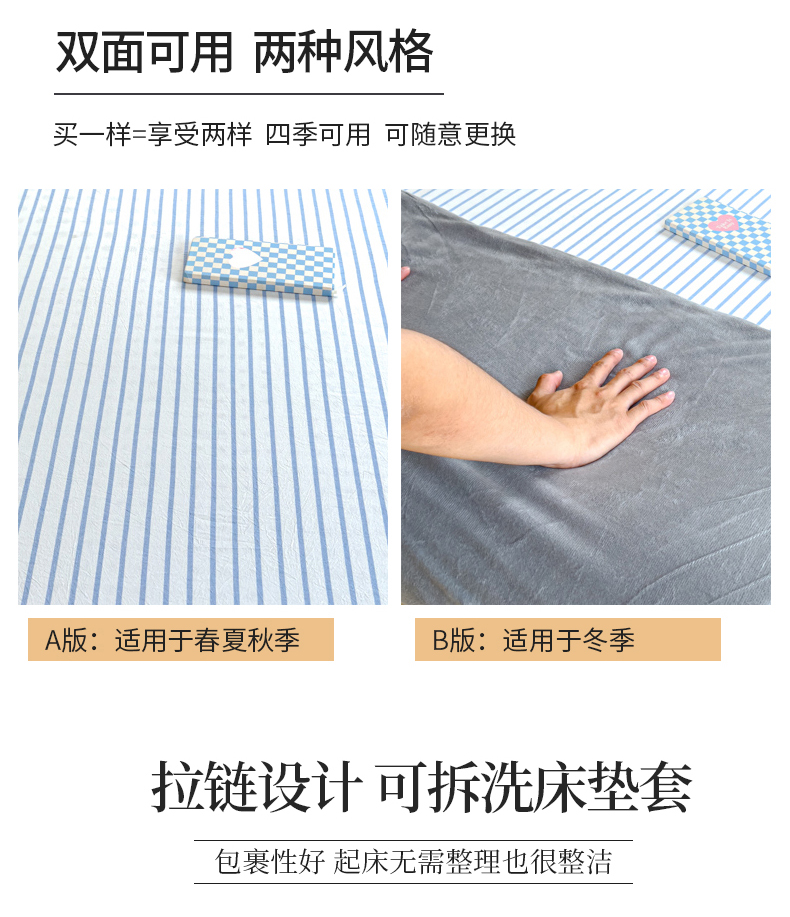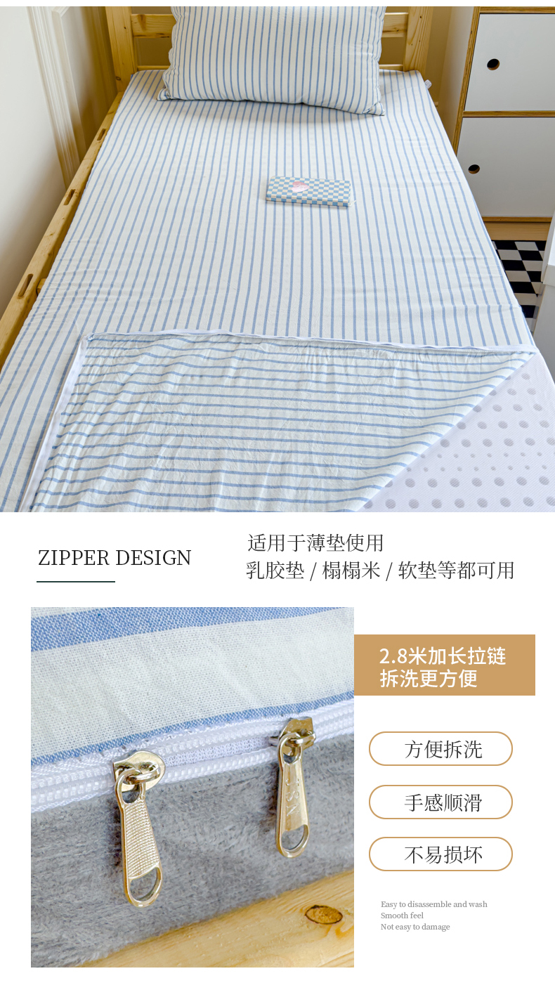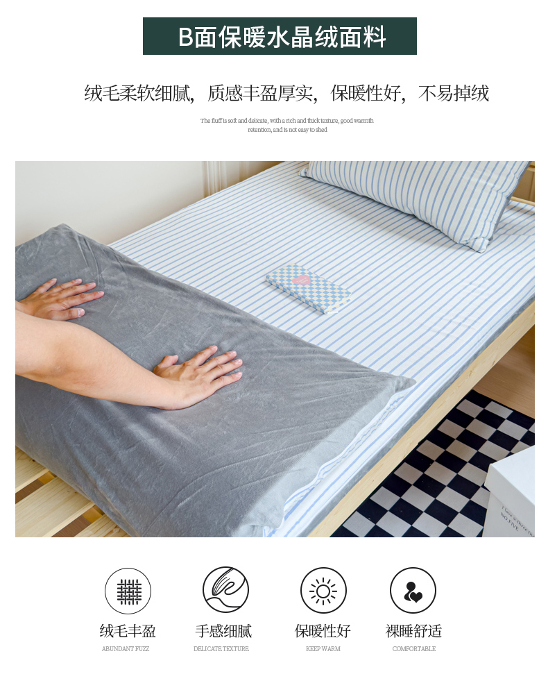 当前位置: 91家纺网 > 商品网购 > 床垫/床褥 > 普通床垫 > 金丝鸟家纺 2024新款全棉色织水洗棉水晶绒床垫套 蓝色中条