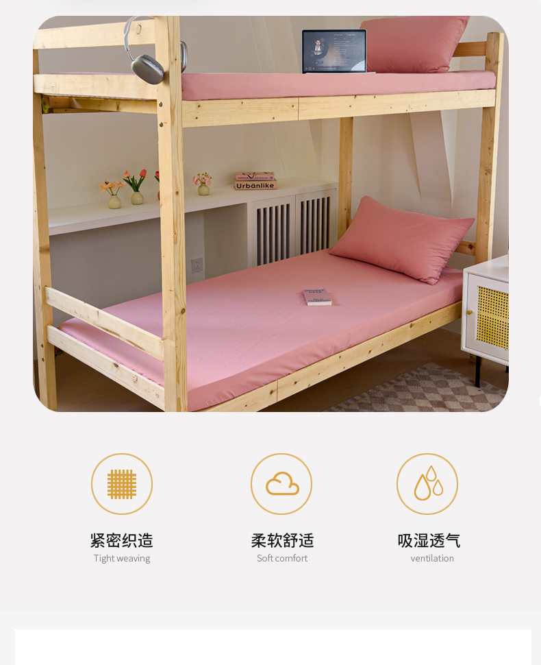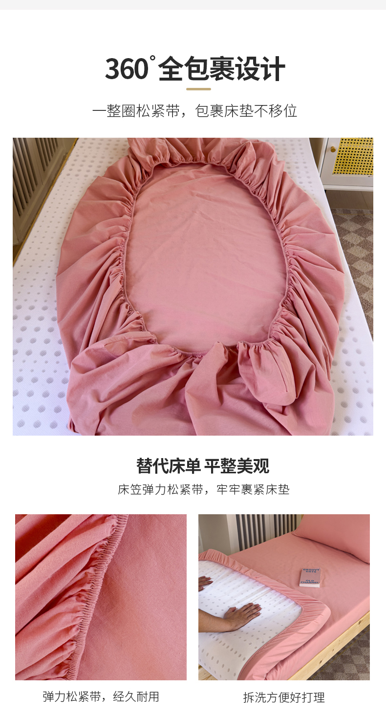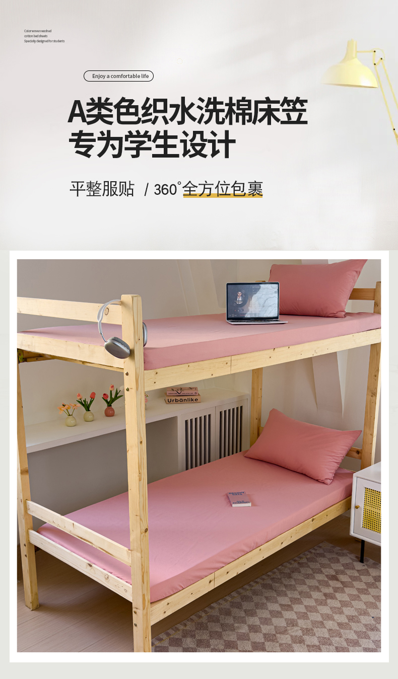 • 91家纺网 家纺一手货源 找家纺 金丝鸟家纺 2024新款A类全棉色织水洗棉单床笠系列(学生床) 粉色