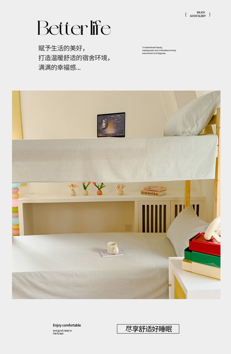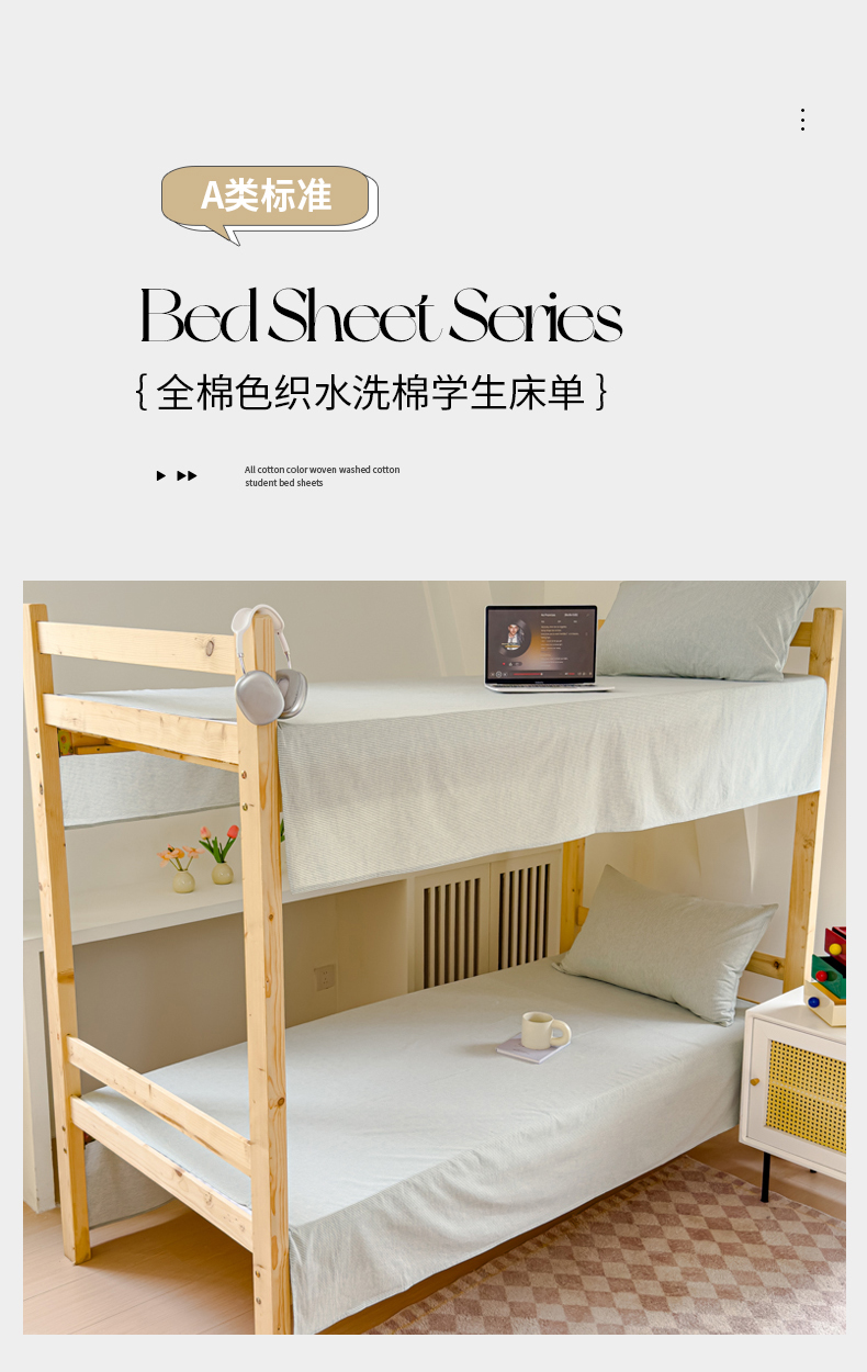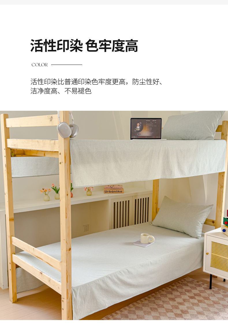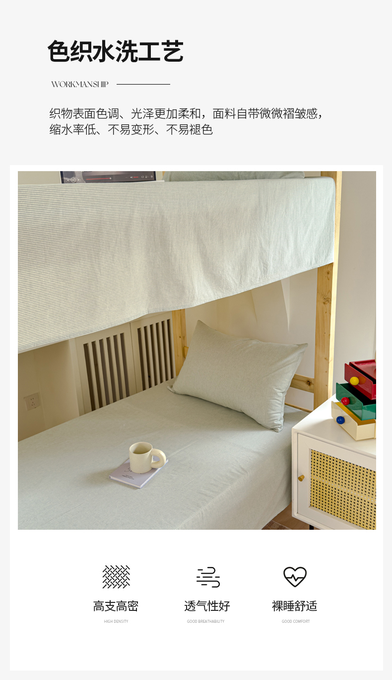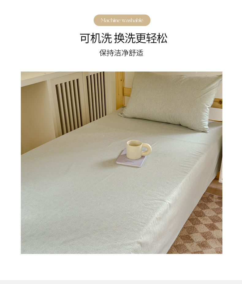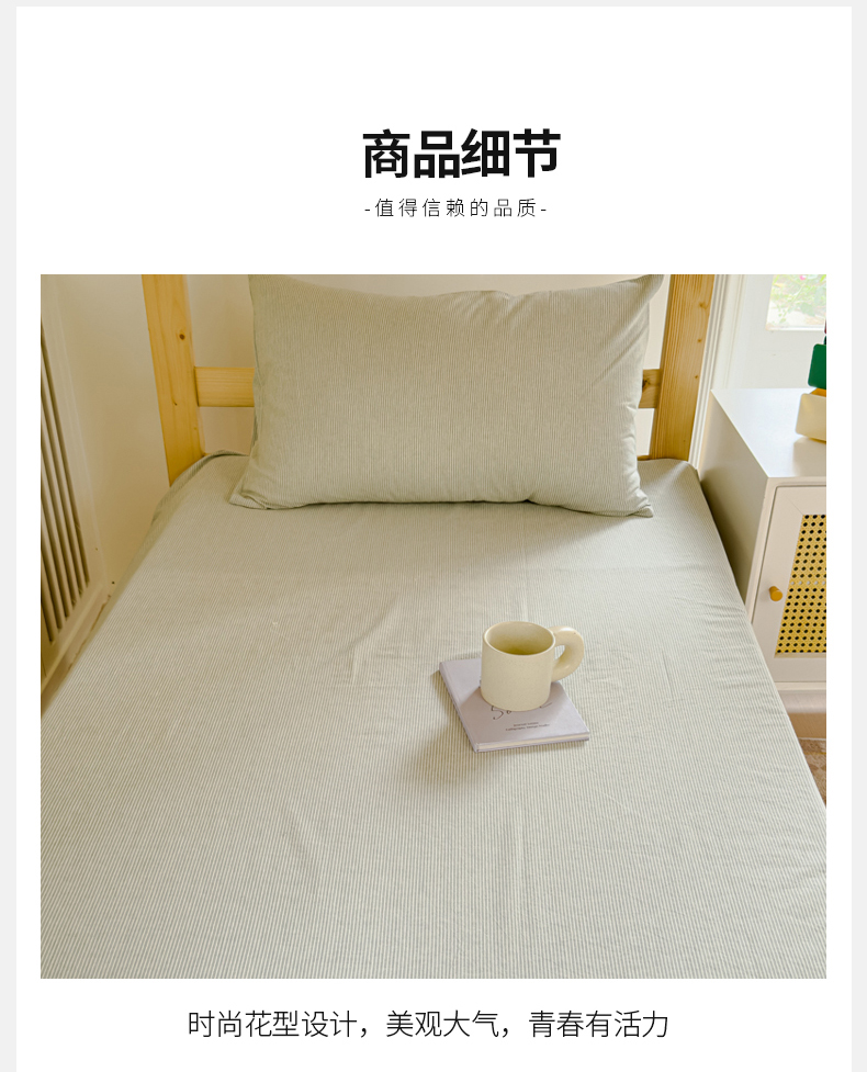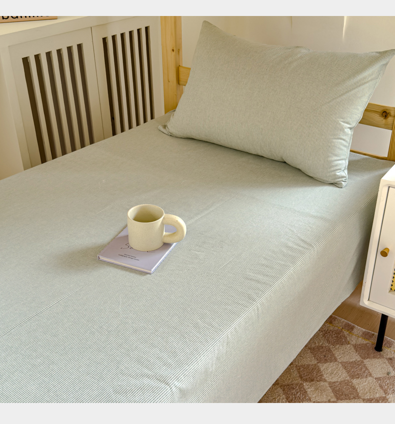 • 91家纺网 家纺一手货源 找家纺 金丝鸟家纺 2024新款A类全棉色织水洗棉单床单系列(学生床) 绿细条