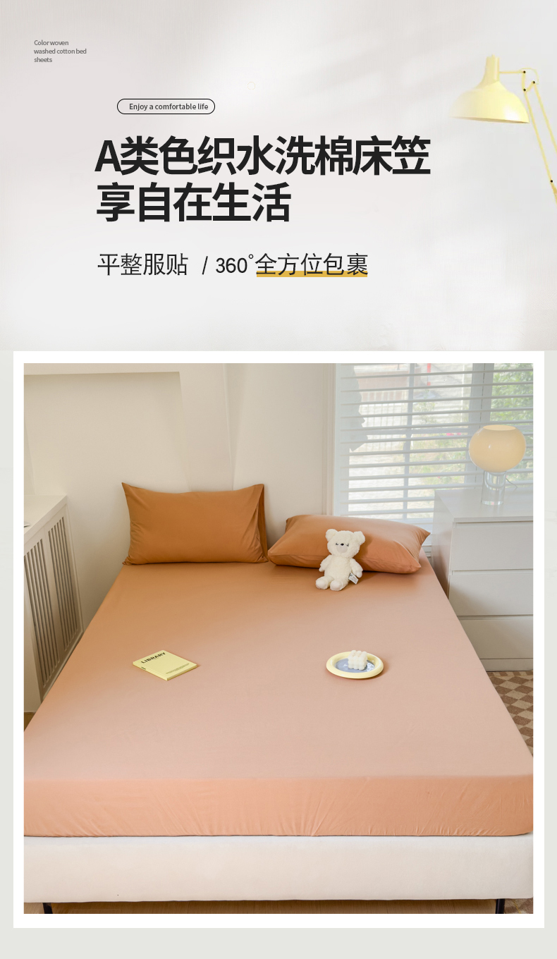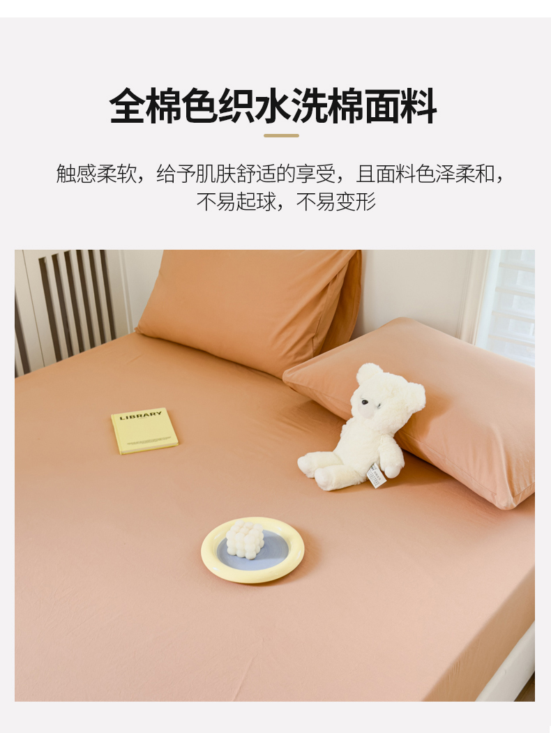 金丝鸟家纺 2024新款A类全棉色织水洗棉床笠系列 驼色