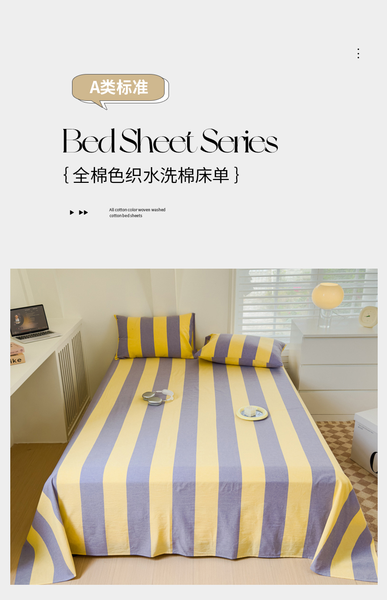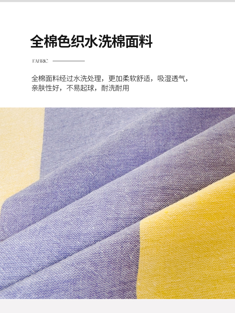 • 91家纺网 家纺一手货源 找家纺 金丝鸟家纺 2024新款A类全棉色织水洗棉单床单系列 黄紫大竖条