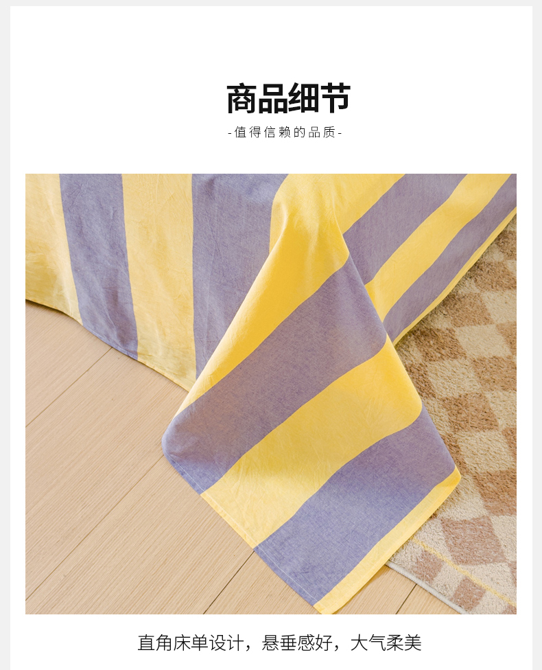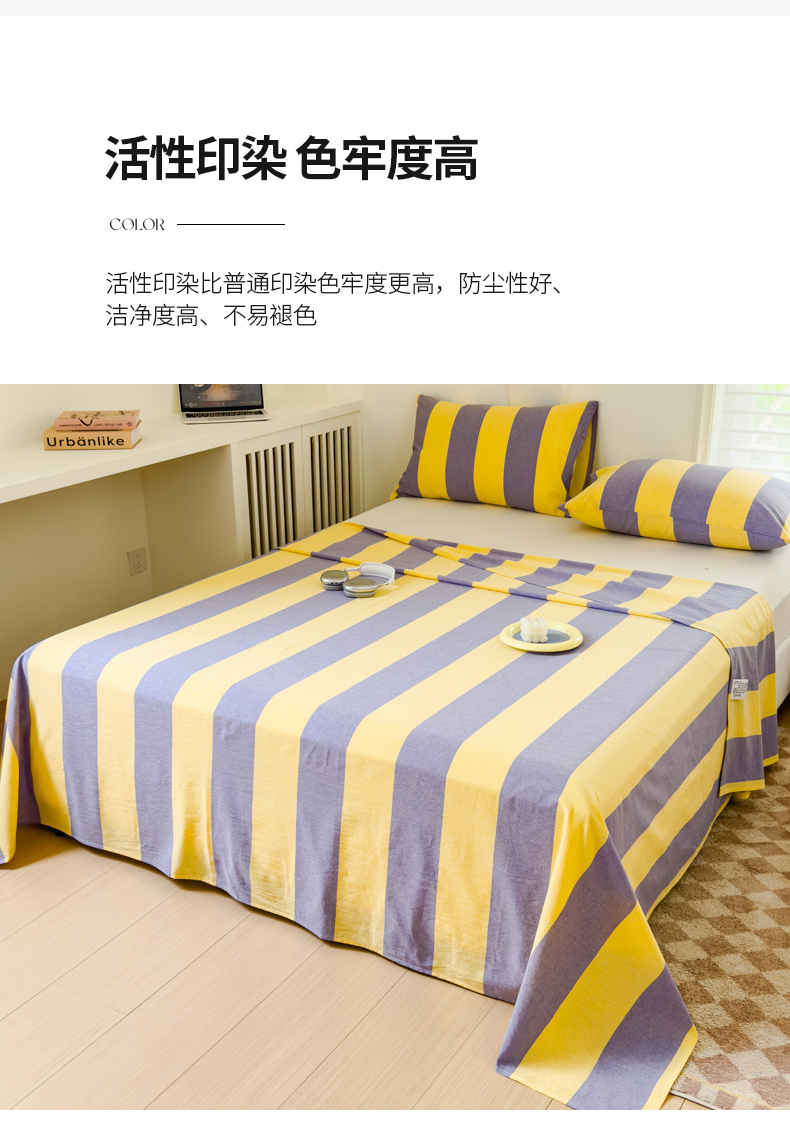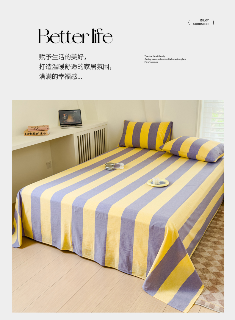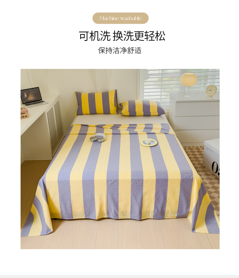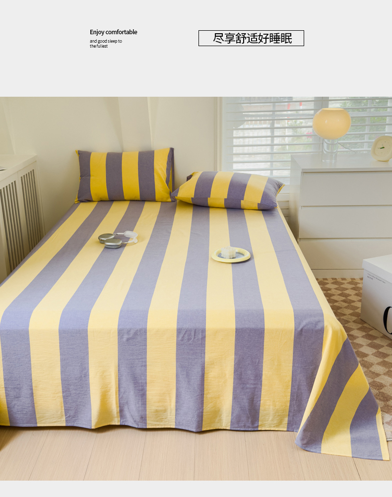 金丝鸟家纺 2024新款A类全棉色织水洗棉单床单系列 黄紫大竖条